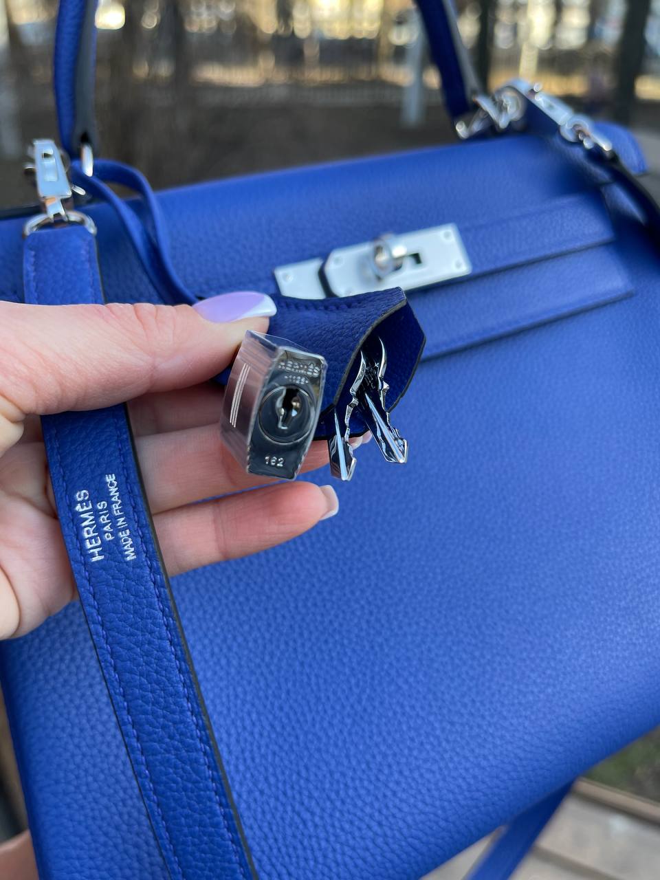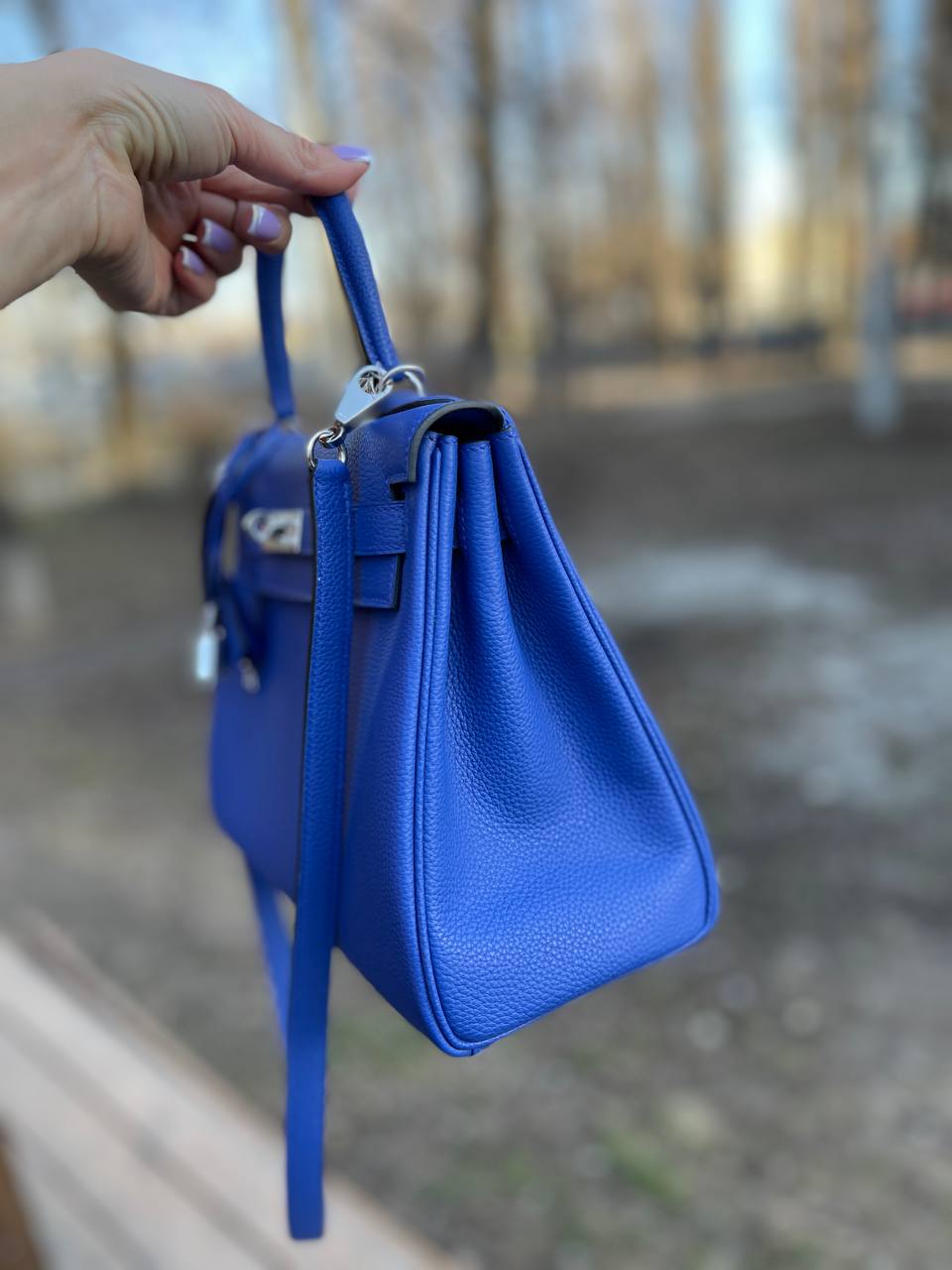 Сумка женская Kelly, 28, Togo, PHW Hermes LUX-87776 представляет собой изысканный аксессуар от Hermes. Сумка выполнена в классическом стиле, она отличается насыщенным синим цветом и текстурированной поверхностью. Идеально подходит для повседневного использования и особых случаев.