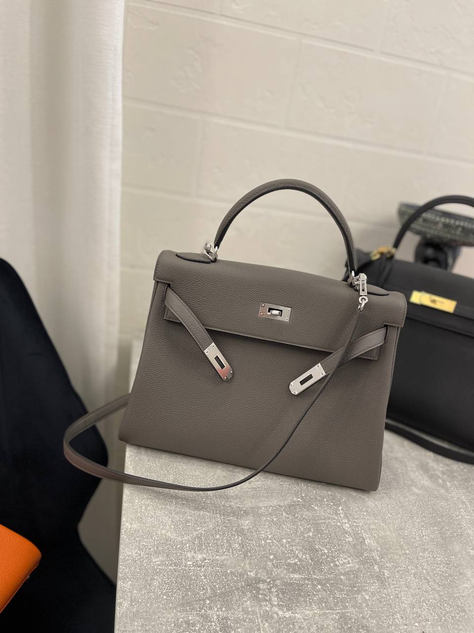 Сумка женская Kelly, 32 PHW Hermes LUX-107207 – это элегантная сумка от Hermes, представленная в классическом стиле. Она выполнена в красивом сером цвете с минималистичным дизайном. Такая сумка станет отличным дополнением к вашему образу, подчеркивая его изысканность.