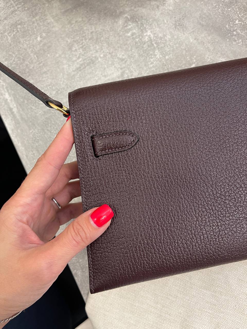 Сумка женская Kelly Elan Chevre Leather Hermes LUX-109028 — это воплощение изысканности и стиля от Hermes. Сумка выполнена в благородном бордовом цвете, с изящной текстурой кожи. Идеально подходит для создания элегантного образа.