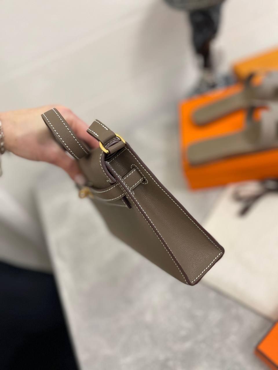Сумка женская Kelly Elan Madame Leather Hermes LUX-113446 — элегантная сумка от Hermes, выполненная в классическом стиле. Прямоугольная форма, нейтральный цвет и минималистичный дизайн делают ее подходящей для различных образов.