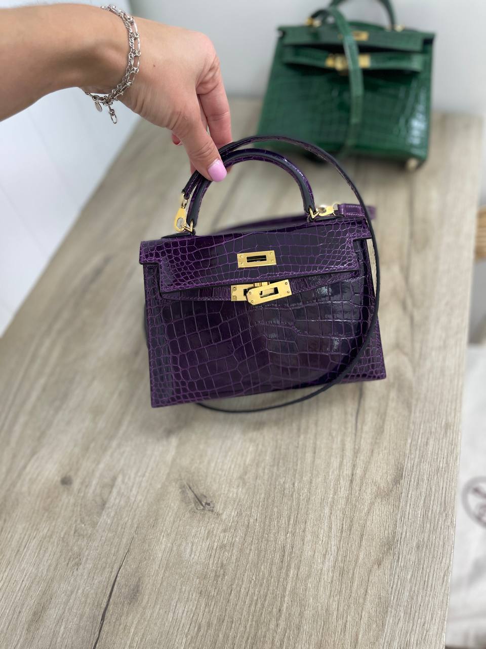 Сумка женская Kelly mini Hermes LUX-69364 — это стильный и элегантный аксессуар, который подчеркнет ваш изысканный вкус. Ее компактный размер и насыщенный фиолетовый цвет делают ее идеальным дополнением к вечернему наряду или деловому образу. Имитация кожи крокодила придает сумке роскошный вид, а золотистая фурнитура добавляет благородства.