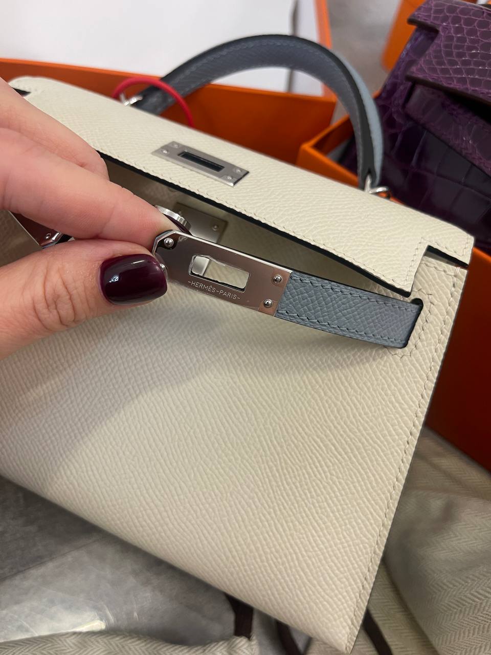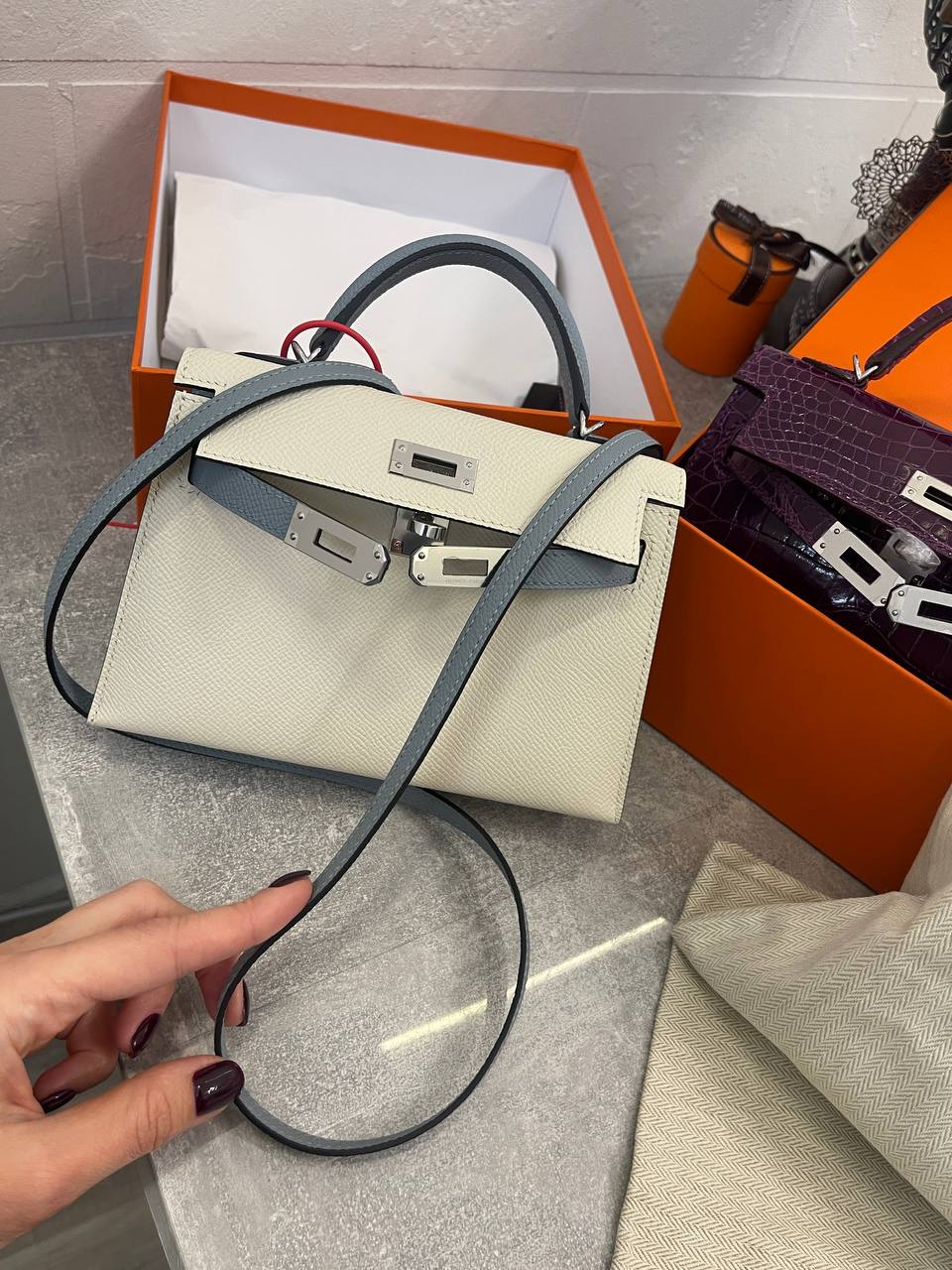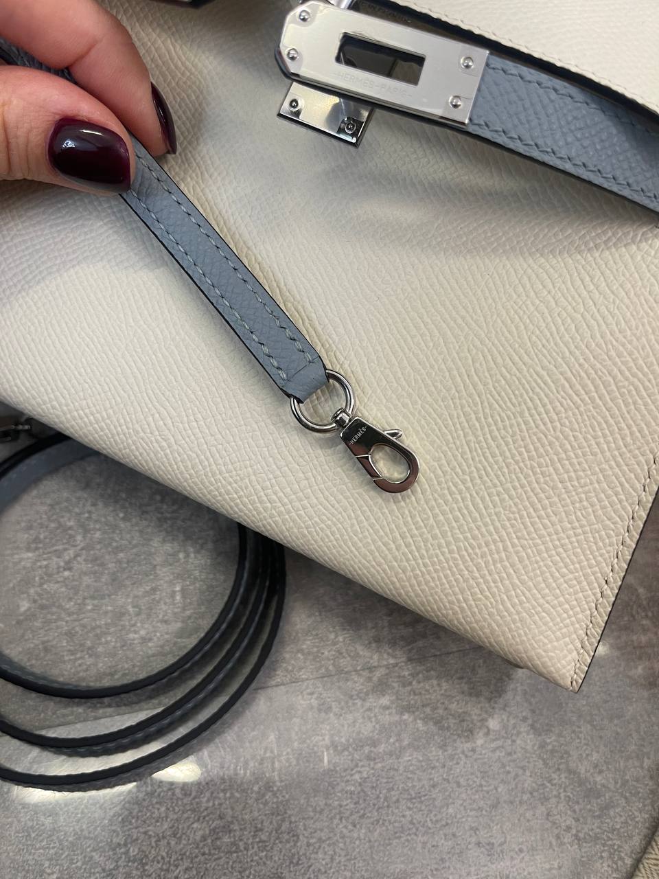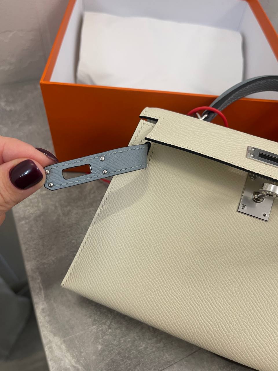 Сумка женская Kelly mini Hermes LUX-98722 — это элегантная и стильная модель, выполненная в классическом дизайне. Сумка выполнена в нежном белом цвете с серым ремешком и ручкой, что делает ее универсальной для различных образов. Она идеально подходит для создания изысканных и утонченных образов.