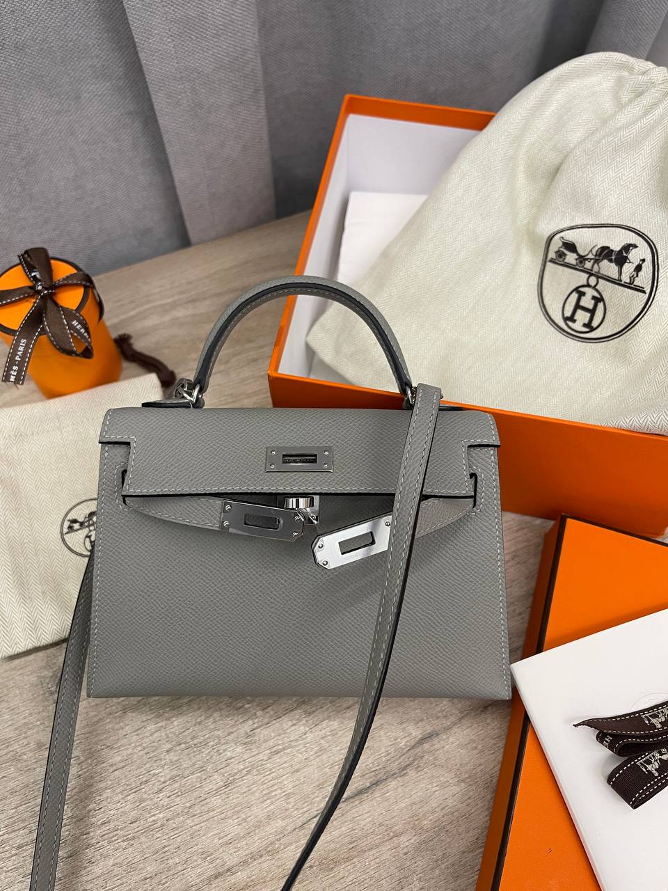 Сумка женская Kelly mini Hermes LUX-110842 — это элегантный аксессуар в классическом стиле. Она выполнена в сером цвете с изысканной текстурой, подчеркивающей ее премиальный вид. Эта сумка предназначена для повседневного использования, дополняя образ своей обладательницы.