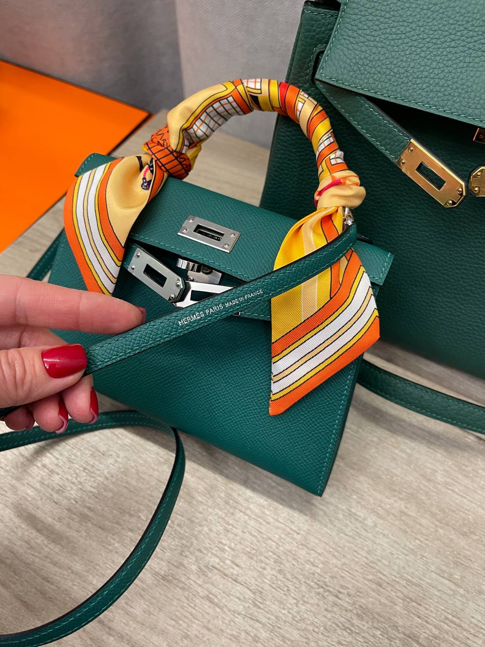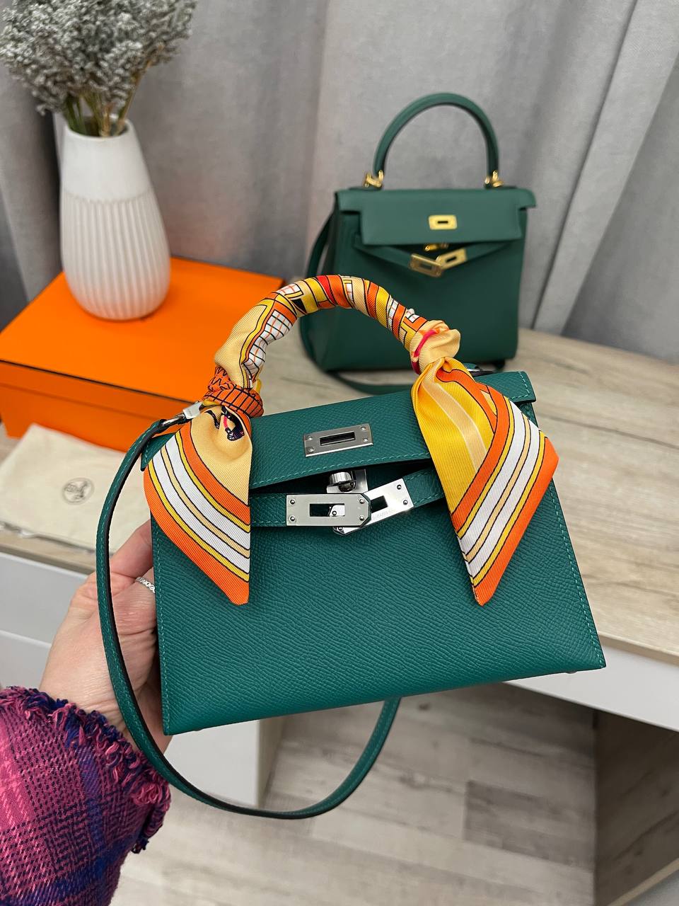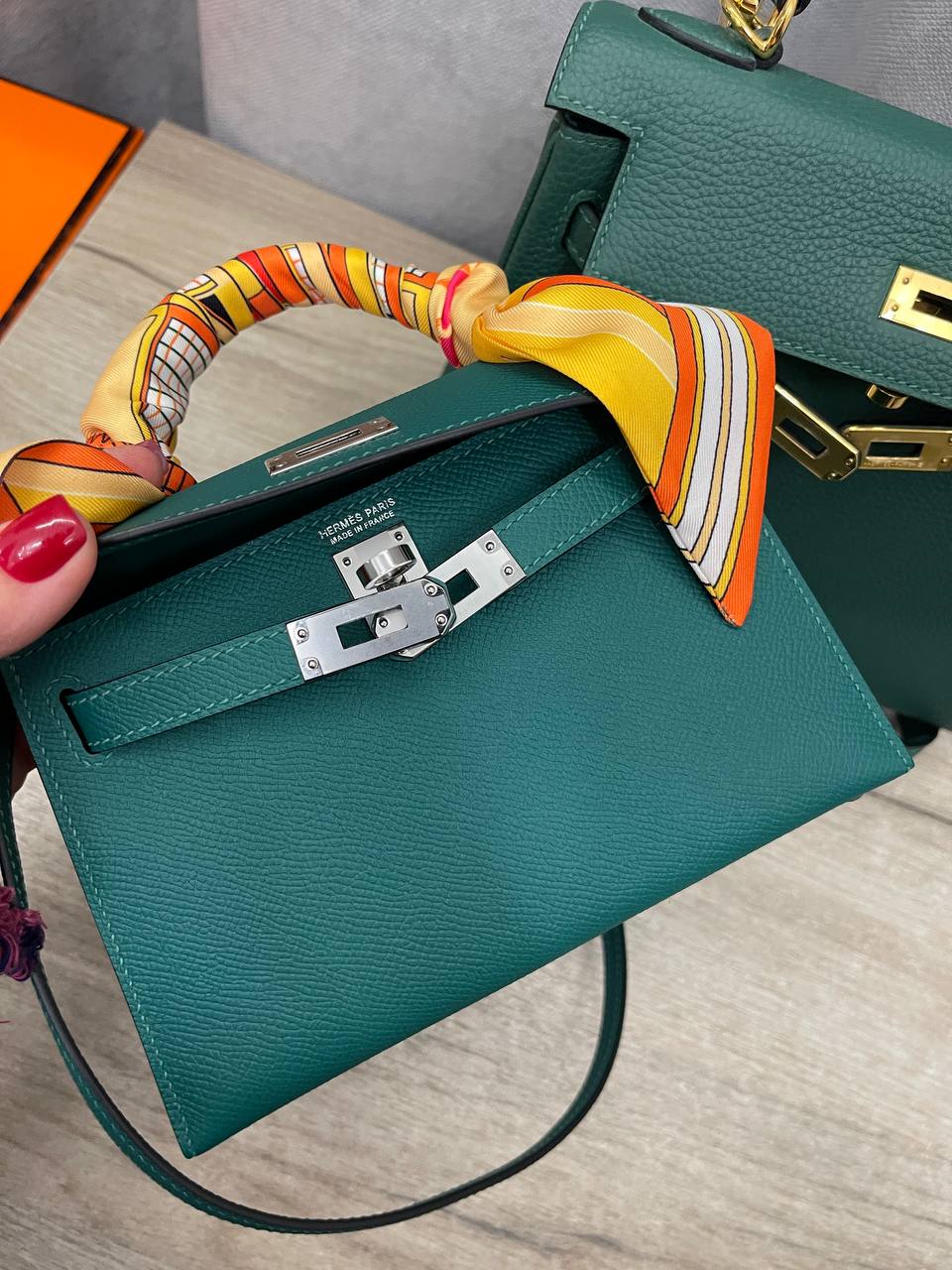 Сумка женская Kelly Mini Hermes LUX-115714 — элегантная сумка классического дизайна. Зеленый цвет и изысканная текстура кожи придают ей утонченный вид. Миниатюрный размер делает ее идеальным аксессуаром для создания стильного образа.