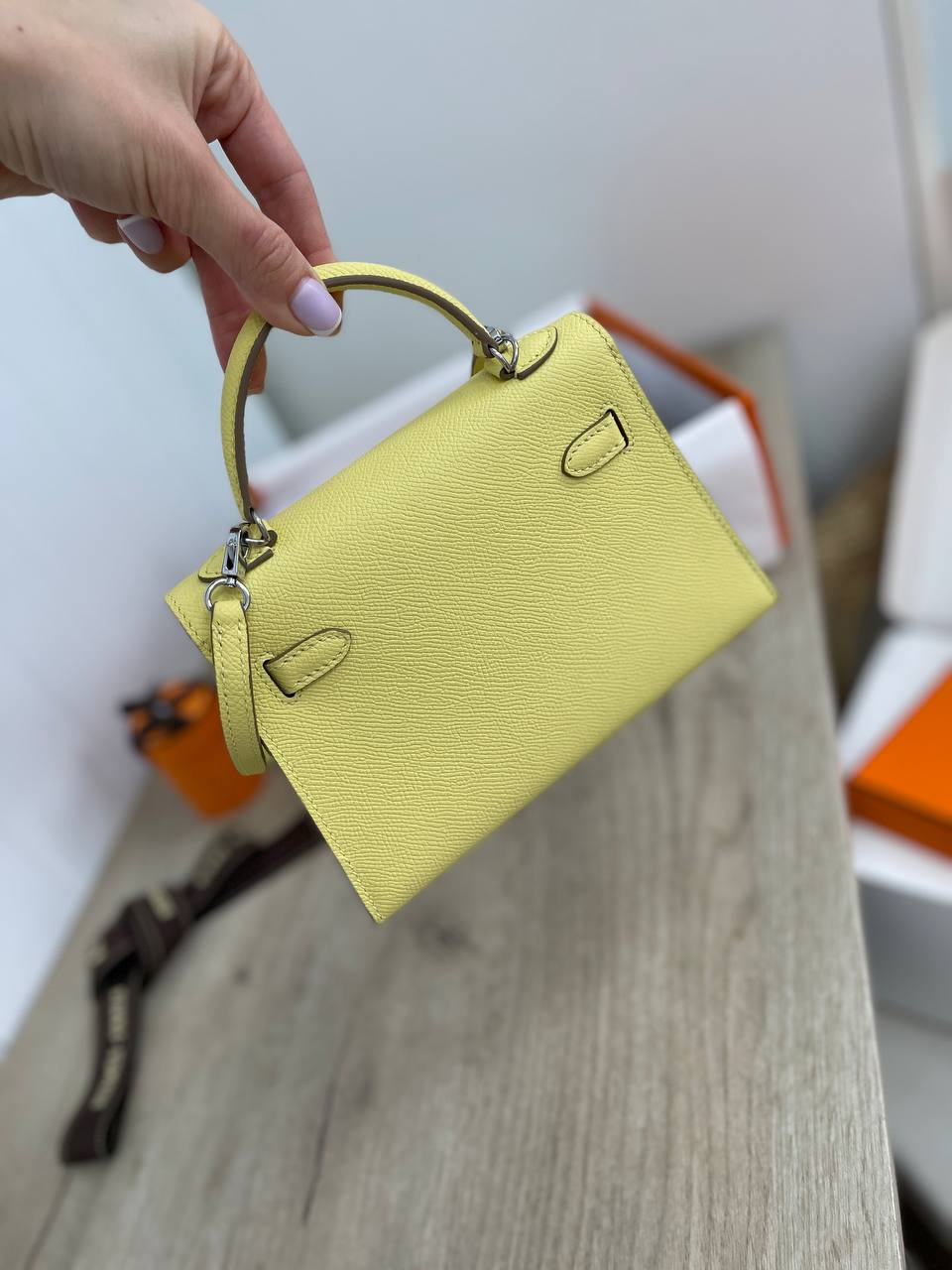 Сумка женская Kelly mini, Epsom Hermes LUX-85162 – это элегантный аксессуар для повседневного использования, выполненный в миниатюрном формате. Сумка представлена в жизнерадостном лимонном цвете, который добавляет яркости любому образу. Текстура материала, вероятно, Epsom, создает привлекательный внешний вид.