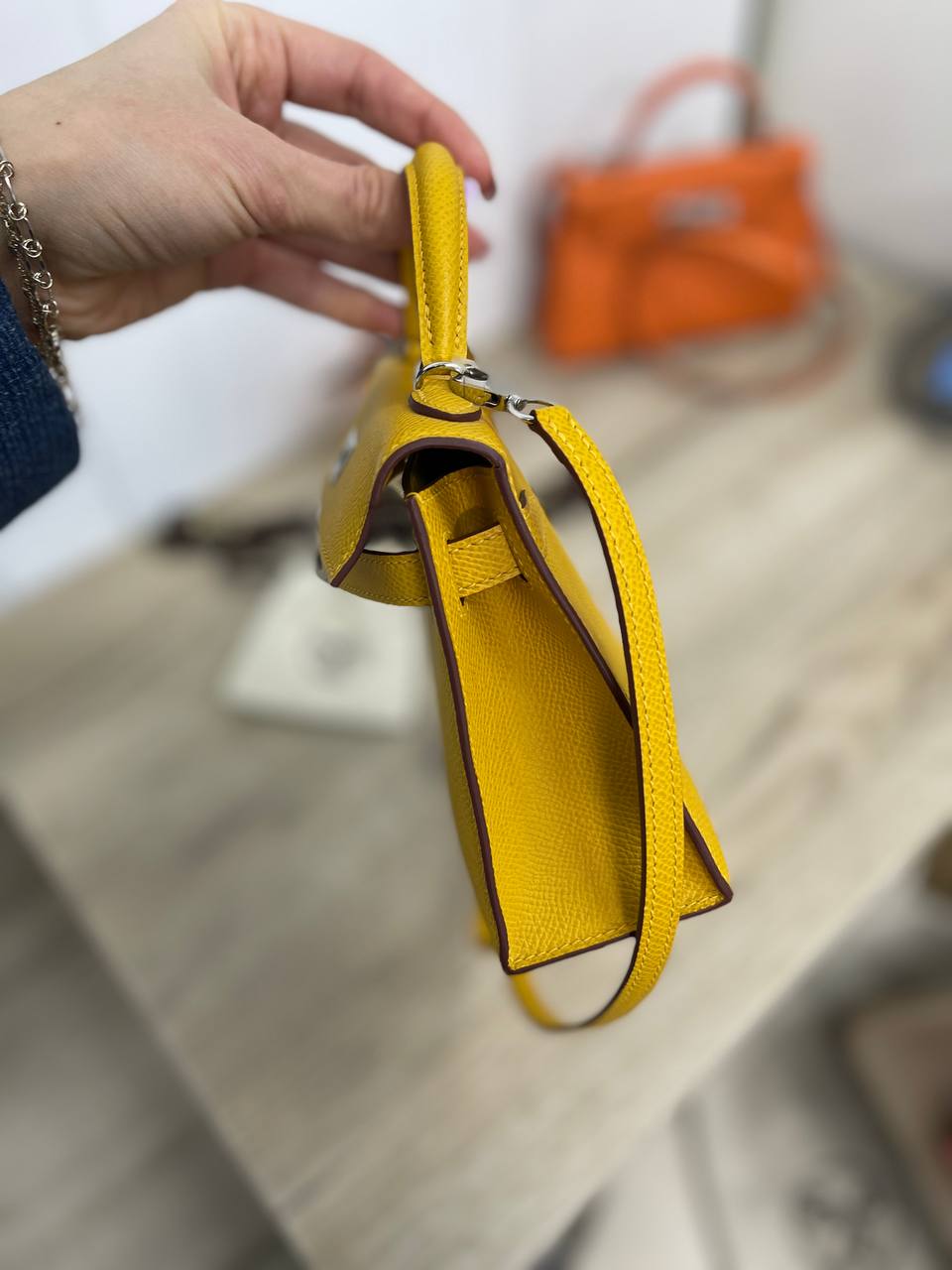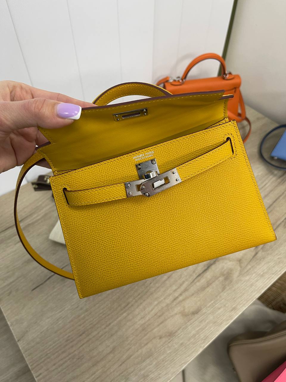 Сумка женская Kelly mini, Epsom Hermes LUX-89068 — это элегантный аксессуар для повседневного использования, выполненный в фирменном стиле Hermes. Сумка представлена в ярком желтом цвете с зернистой текстурой кожи. Компактный размер и универсальный дизайн делают её идеальным дополнением к любому образу.
