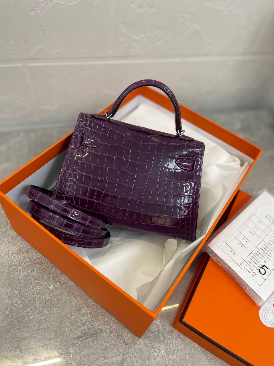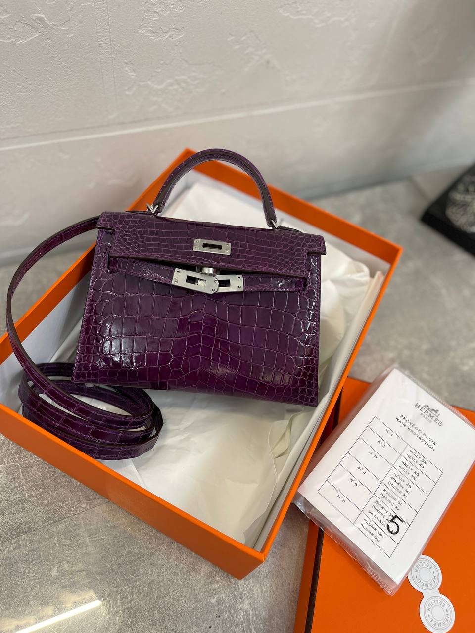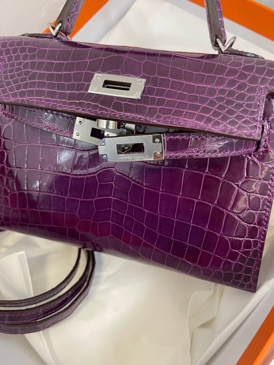 Сумка женская Kelly mini, PHW NILOTICUS LISSE от Hermes (LUX-97523) – это изысканный аксессуар, который подчеркнет элегантность и статус своей владелицы. Сумка выполнена в насыщенном фиолетовом цвете с текстурой под крокодиловую кожу, что придает ей роскошный вид. Kelly mini идеально подойдет для создания как повседневных, так и вечерних образов.
