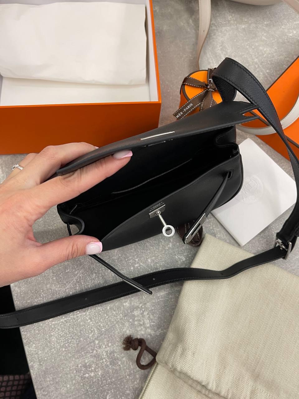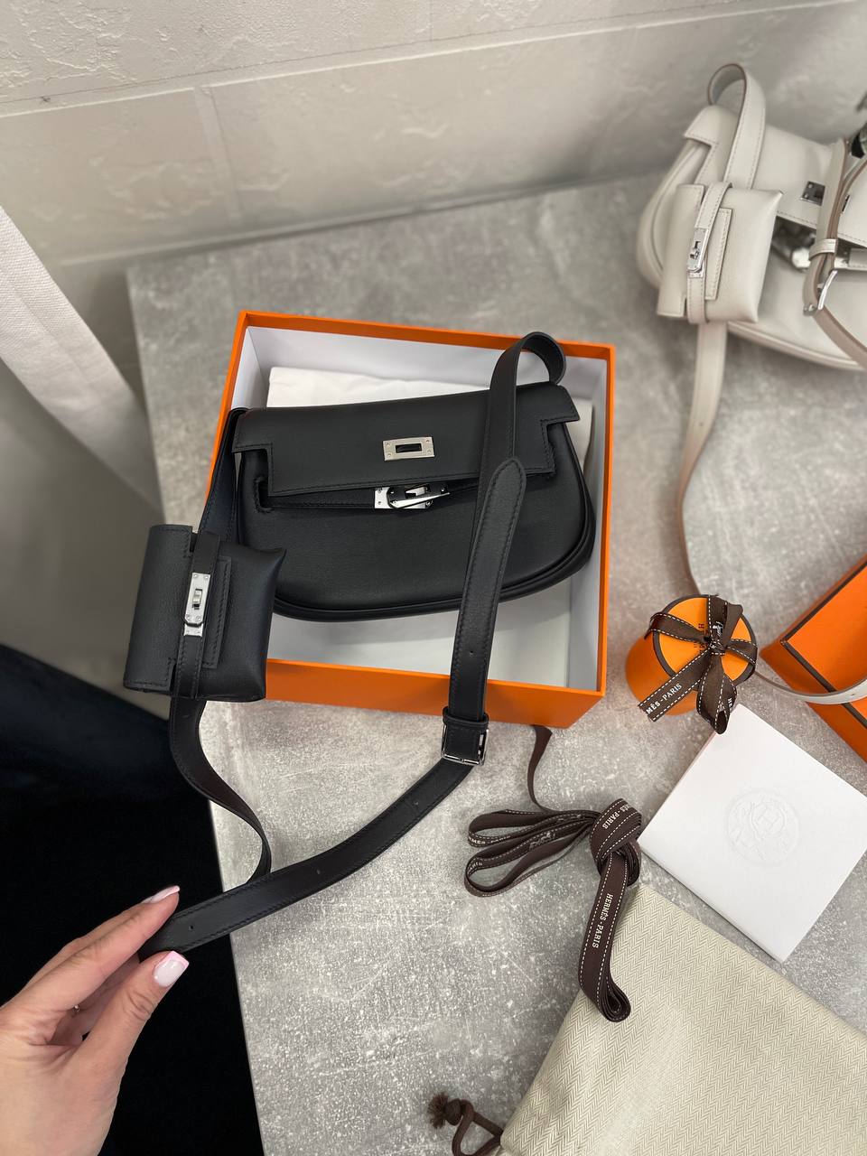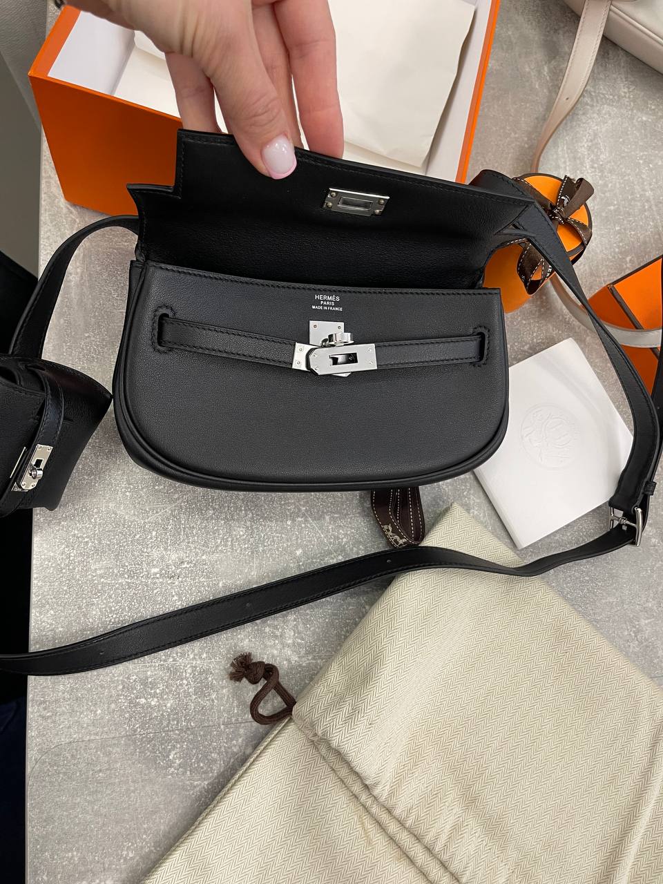 Сумка женская Kelly Moove 19, swift leather Hermes LUX-107208 — элегантная и функциональная сумка через плечо, выполненная в классическом стиле. Черный цвет и гладкая текстура кожи придают ей изысканный вид, идеально подходящий для повседневного использования и особых случаев. Сумка обеспечивает комфорт и стиль, подчеркивая индивидуальность владелицы.