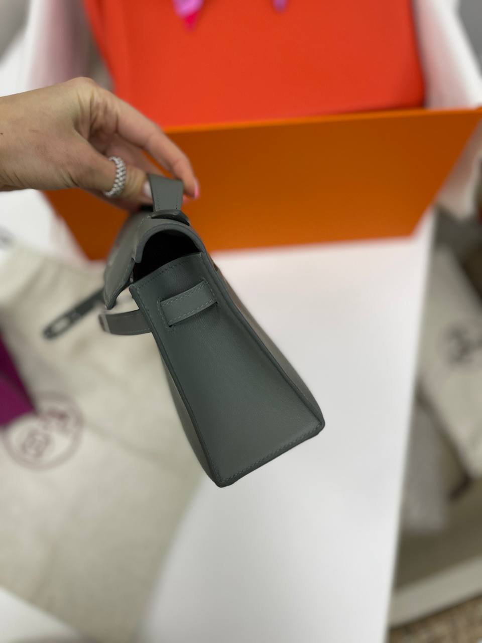 Сумка женская Kelly Pochette Hermes LUX-83830 выполнена в элегантном стиле. Эта сумочка имеет стильный серый цвет и гладкую текстуру. Она идеально подойдет для вечерних выходов и особых случаев, добавляя изысканности вашему образу.