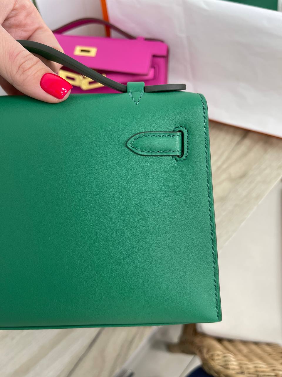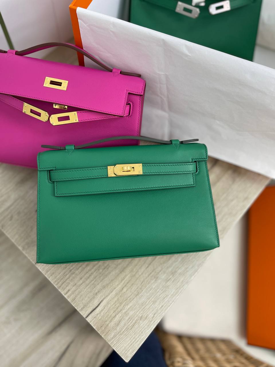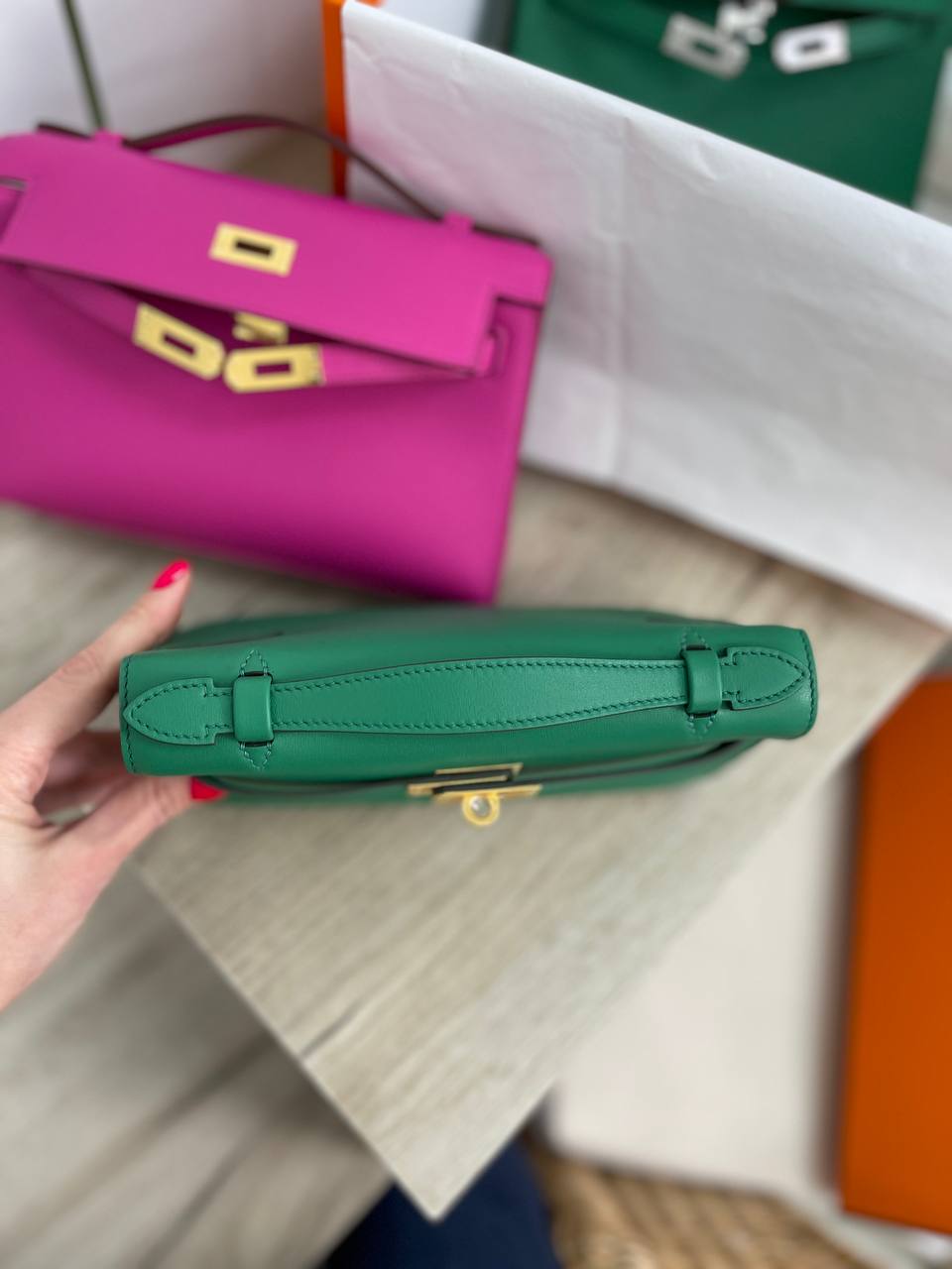Сумка женская Kelly Pochette Hermes LUX-89308 — это элегантный аксессуар в классическом стиле. Она выполнена в ярком зеленом цвете, имеет гладкую текстуру и золотистую фурнитуру. Идеальна для особых случаев и для завершения стильного образа.