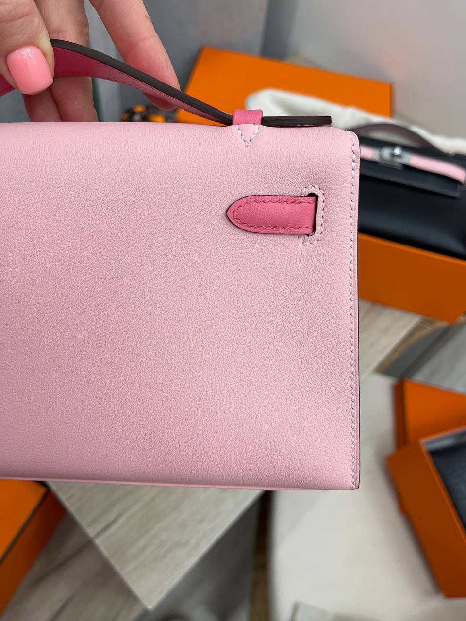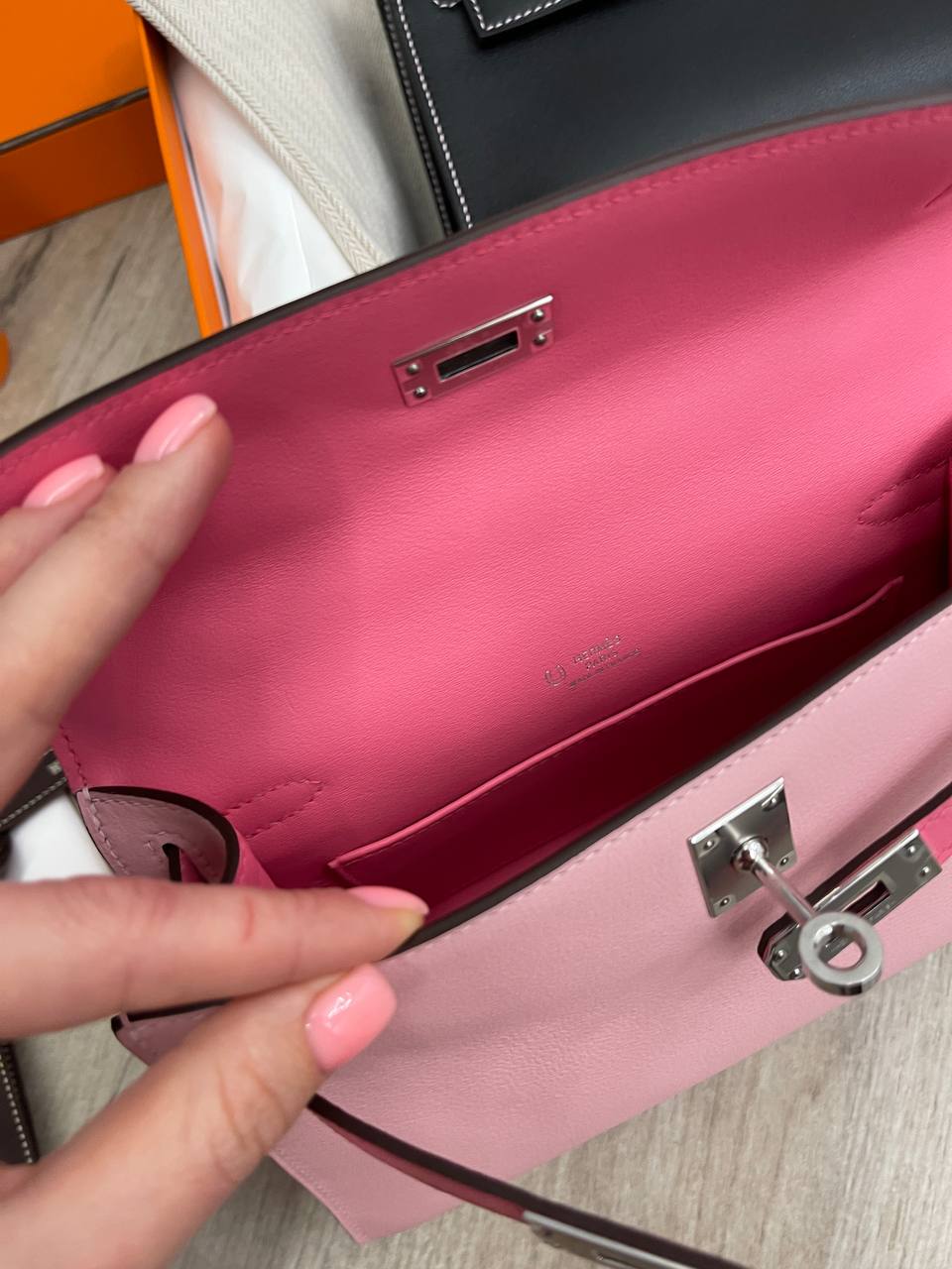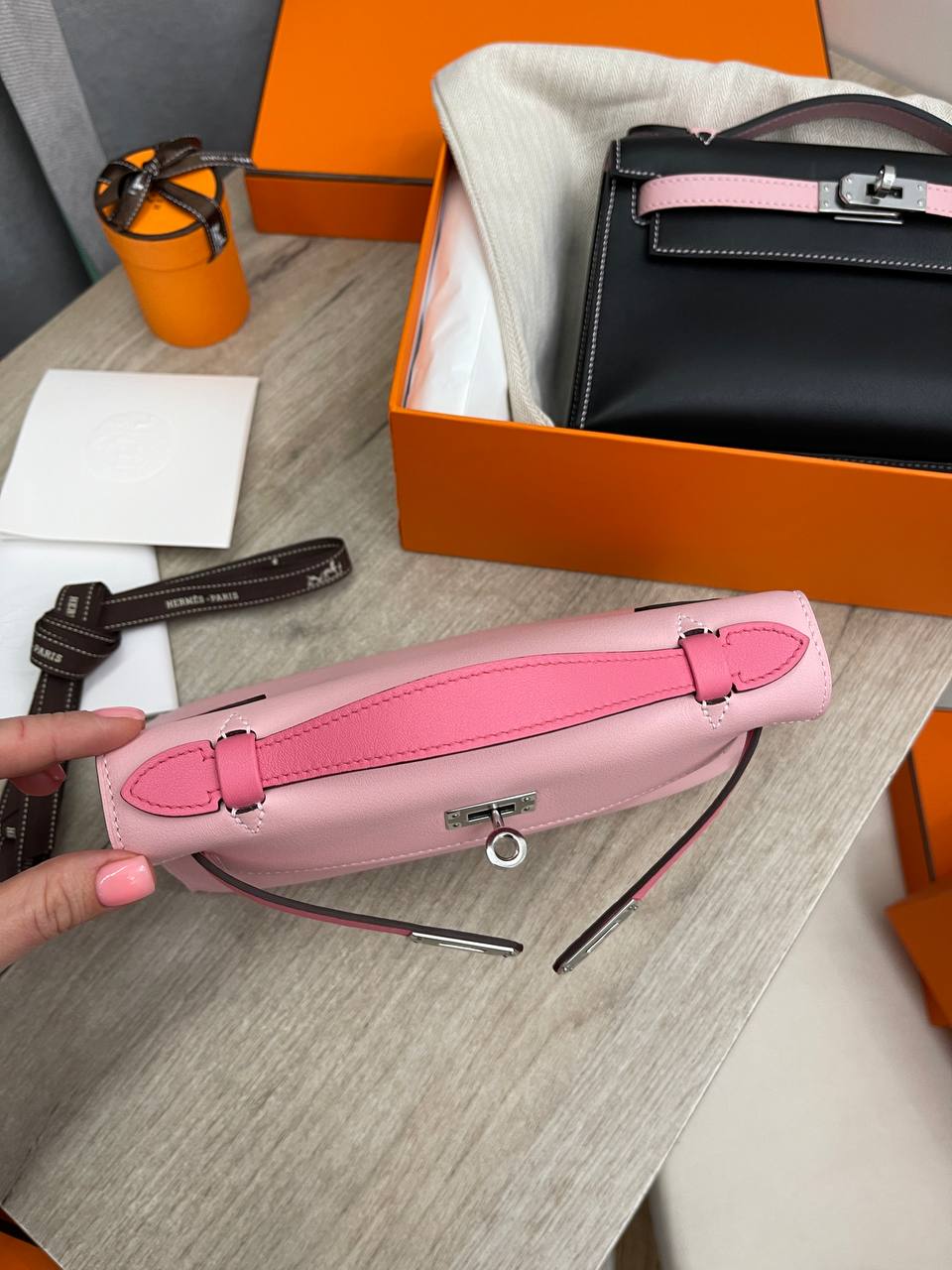 Сумка женская Kelly Pochette Hermes LUX-103710 – это воплощение элегантности и стиля от известного бренда. Сумка выполнена в нежно-розовом цвете с контрастными деталями, она станет ярким акцентом в любом образе. Этот аксессуар идеально подойдет для вечерних выходов и особых случаев.