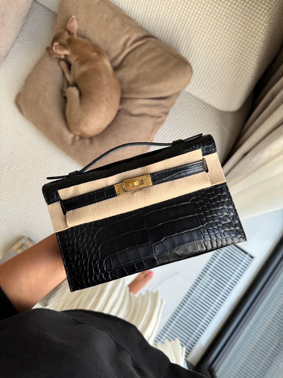 Сумка женская Kelly Pochette Hermes LUX-113548 – это элегантный аксессуар, выполненный в классическом стиле. Черный цвет и текстура под крокодиловую кожу придают сумке изысканный вид. Идеально подходит для особых случаев и вечерних выходов.