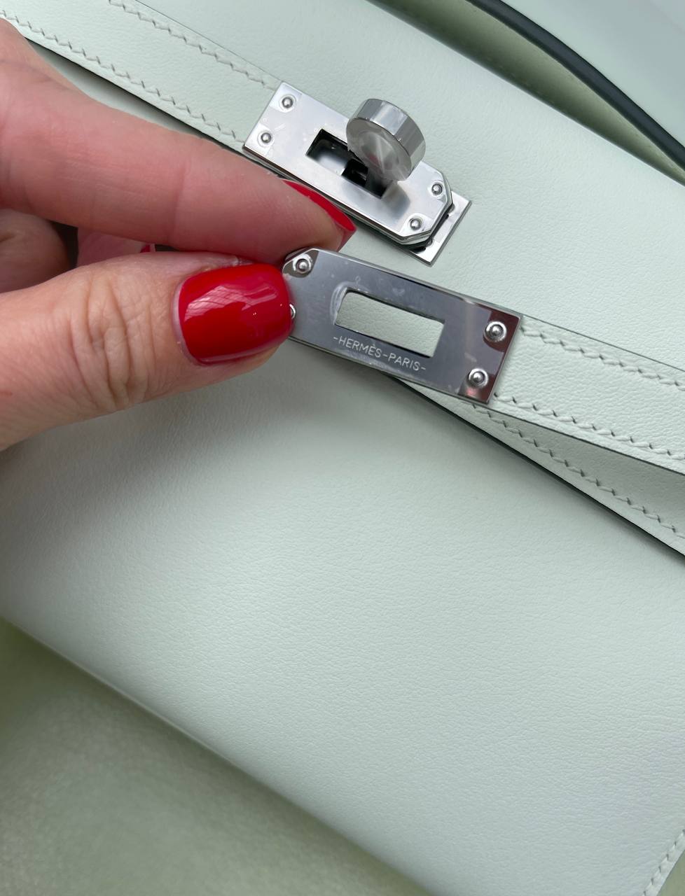 Сумка женская Kelly Pochette Hermes LUX-118863 - это элегантный аксессуар в классическом стиле. Она выполнена в нежном мятном цвете с гладкой текстурой. Сумка имеет лаконичный дизайн и небольшие размеры, что делает её идеальным выбором для вечерних выходов и особых случаев.