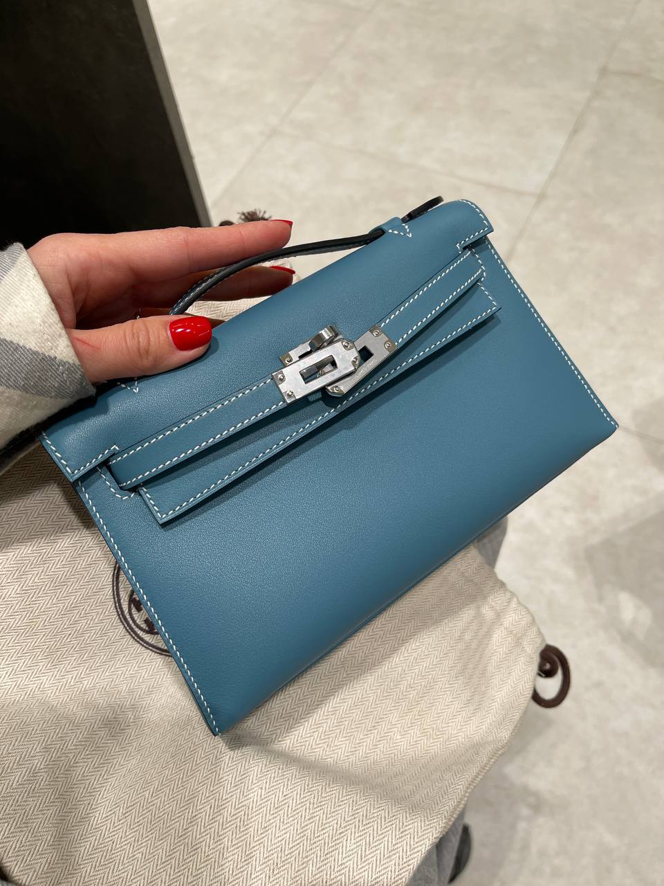 Сумка женская Kelly Pochette Hermes LUX-118867 — это изысканный аксессуар от Hermes, выполненный в элегантном дизайне. Она выполнена в лазурном цвете с контрастной белой строчкой. Эта сумка идеально подходит для вечерних выходов, особых случаев и для создания стильного повседневного образа.