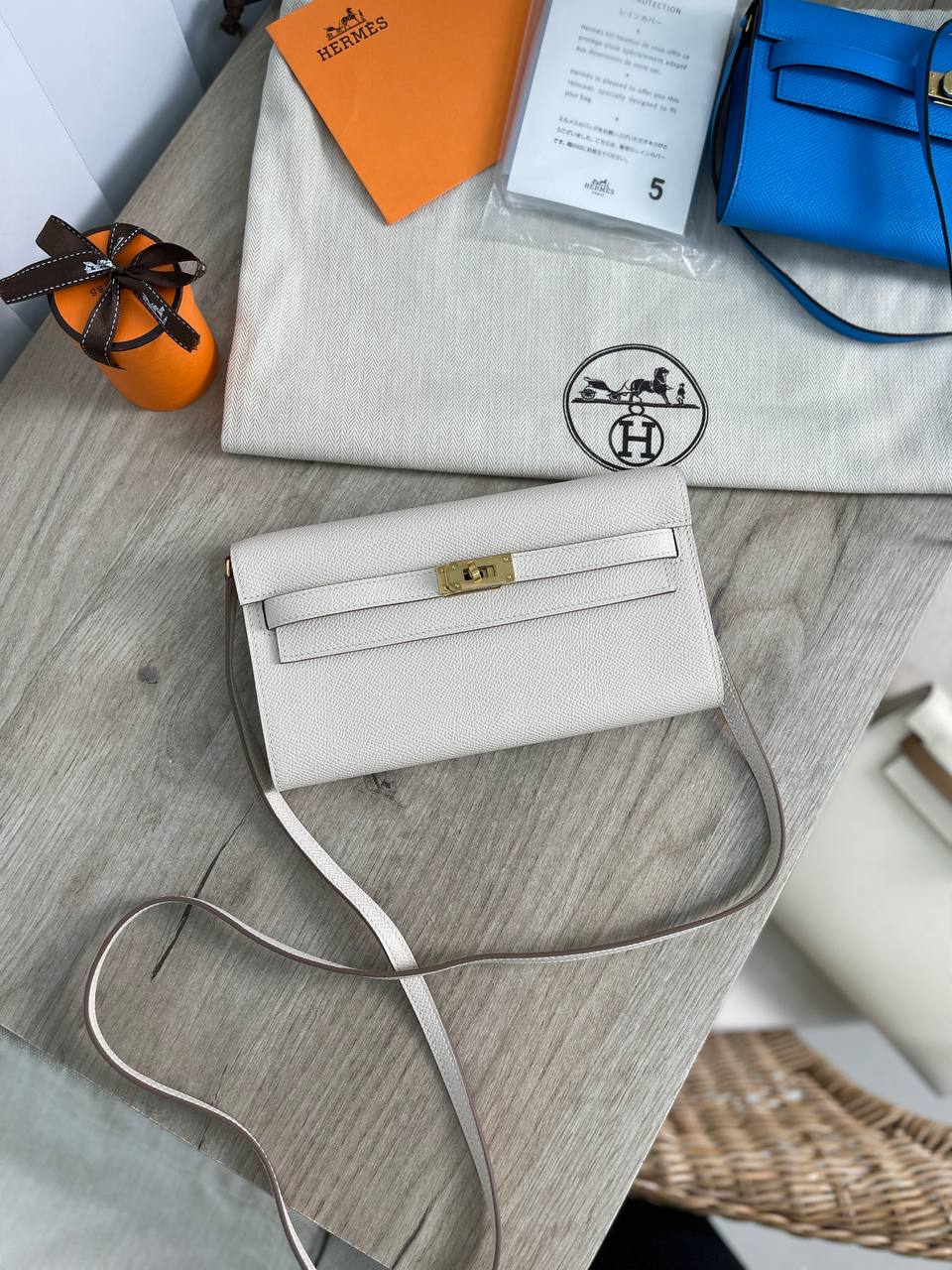 Сумка женская Kelly wallet Hermes LUX-78212 — элегантная модель от Hermes. Сумка выполнена в классическом стиле, имеет молочный цвет и текстуру, что делает ее универсальной. Идеально подходит для повседневного использования и особых случаев.