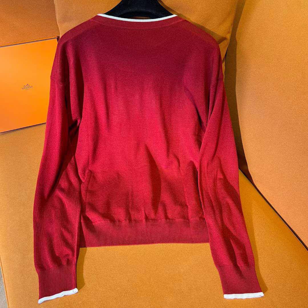 Свитер Hermes LUX-112951 — это стильный предмет гардероба, сочетающий в себе элегантность и комфорт. Свитер выполнен в красных тонах с деталями в виде принта на белом фоне. Он идеально подходит для создания как повседневных, так и более изысканных образов.