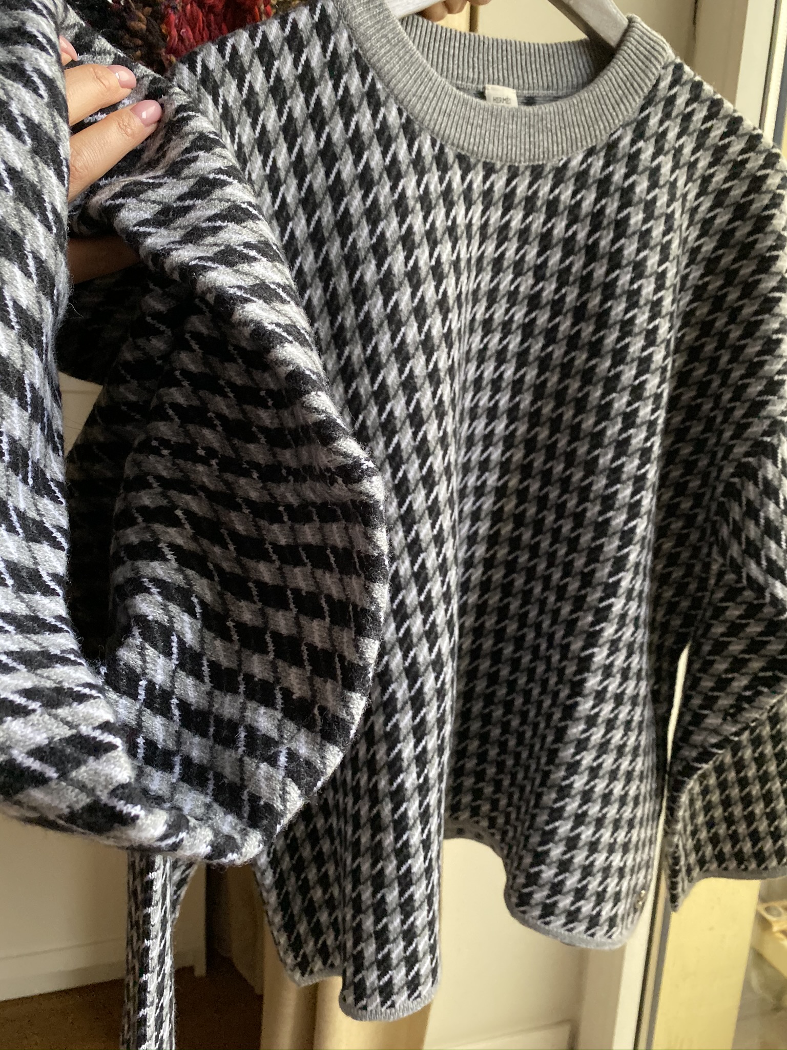 Свитер женский Hermes LUX-25310 представляет собой стильный элемент гардероба, выполненный в классическом стиле. Его узнаваемый узор "гусиная лапка" в черно-белой гамме придает образу элегантность и изысканность. Этот свитер идеально подойдет для создания как повседневных, так и более формальных образов.