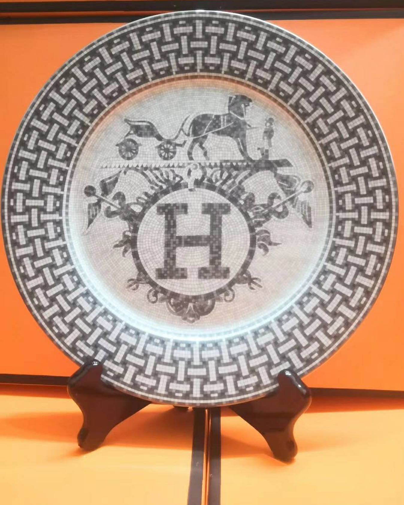 Изысканная тарелка Hermes LUX-36883 представляет собой роскошное дополнение к интерьеру или сервировке стола. Ее дизайн вдохновлен классическими мотивами, сочетая элегантность и узнаваемый стиль бренда Hermes. Центральное место занимает монограмма "H", окруженная витиеватым узором, напоминающим мозаику, а по ободку проходит геометрический орнамент. Эта тарелка станет акцентом в вашей коллекции посуды.