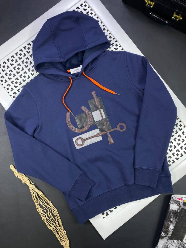Толстовка Hermes LUX-53524 – это стильная модель с капюшоном, выполненная в темно-синем цвете. Дизайн толстовки украшает оригинальная аппликация, имитирующая элементы конного спорта, что придает ей уникальность и элегантность. Благодаря свободному крою и приятному материалу, эта толстовка обеспечивает максимальный комфорт. Она идеально подходит для создания непринужденных, но в то же время изысканных образов.