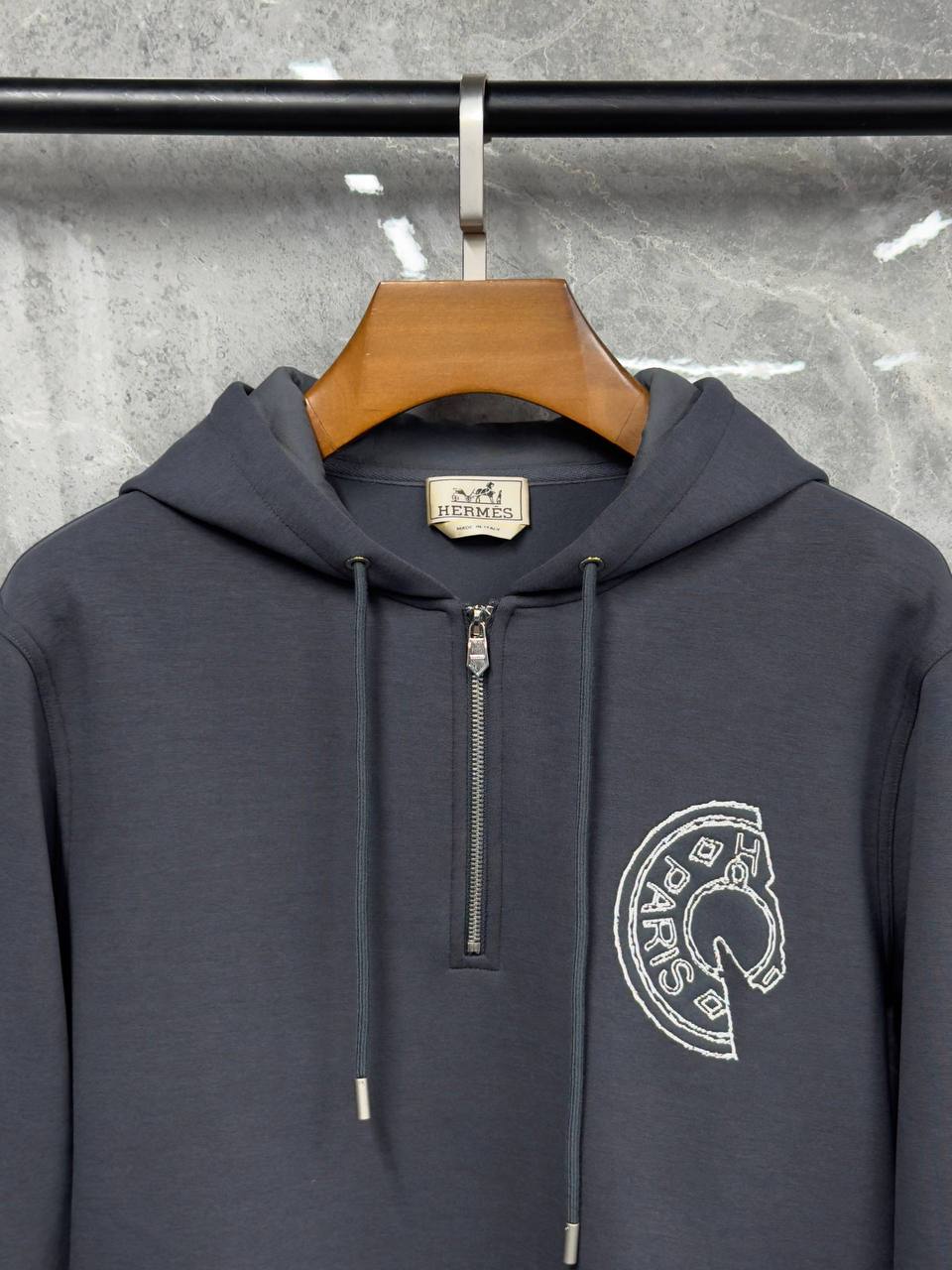 Толстовка Hermes LUX-129347 - это стильный выбор для создания комфортного и модного образа. Эта модель с капюшоном и застежкой-молнией идеально подходит для повседневной носки.