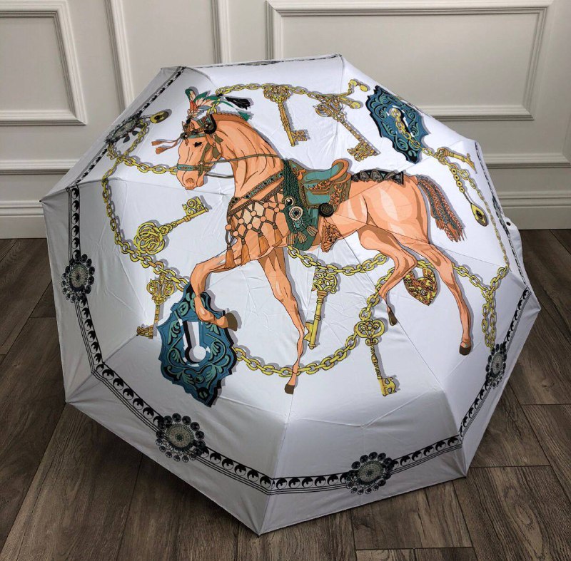 Зонт Hermes LUX-56004 – это элегантный аксессуар, который сочетает в себе высокое качество и уникальный дизайн. На его куполе изображен стилизованный рисунок с лошадью, ключами и цепями, выполненный в изысканной цветовой палитре. Этот зонт станет не только надежной защитой от непогоды, но и эффектным дополнением к вашему образу, подчеркивая утонченный вкус.