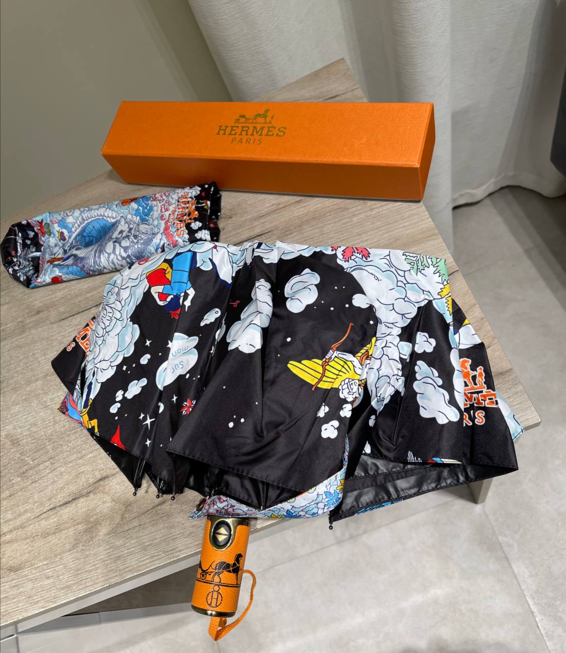 Зонт Hermes LUX-118647 - это стильный аксессуар, который сочетает в себе элегантность и функциональность. Он выполнен в ярком и оригинальном дизайне, который привлекает внимание. Этот зонт станет прекрасным дополнением к вашему образу и защитит вас от непогоды.