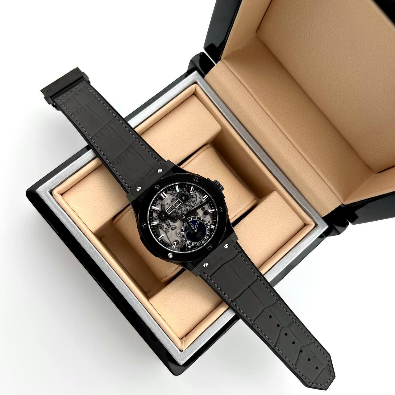 Часы Hublot LUX-89632 — это современный аксессуар, сочетающий в себе элегантность и функциональность. Черный циферблат и ремешок гармонично сочетаются, создавая стильный образ. Часы подойдут для повседневной носки и для особых случаев, подчеркивая индивидуальность владельца.