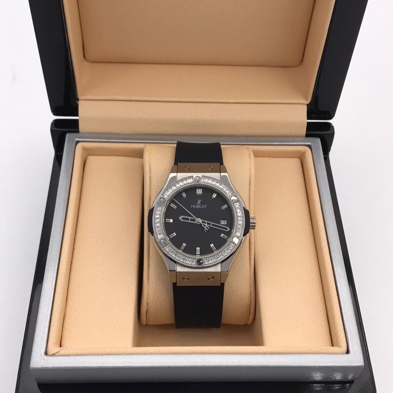 Hublot LUX-43959 — это элегантные мужские часы, представляющие собой сочетание спортивного стиля и роскоши. Классический черный циферблат с минималистичными индексами подчеркивает изысканность дизайна, а инкрустация кристаллами по ободку добавляет блеска и привлекательности. Эти часы станут идеальным аксессуаром как для деловых встреч, так и для особых случаев.