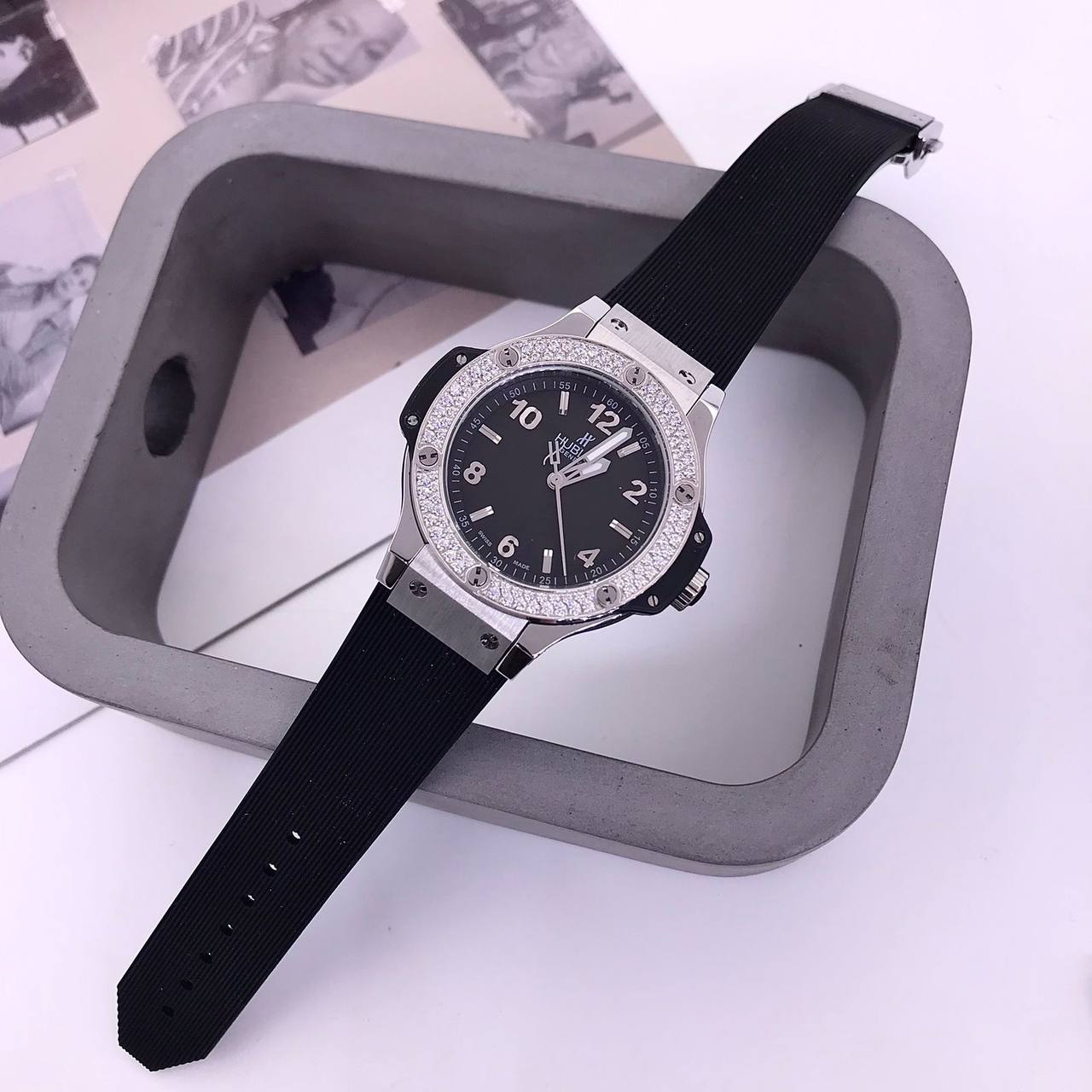 Часы Hublot LUX-80489 - это воплощение роскоши и элегантности. Стильные часы с круглым циферблатом черного цвета и серебристым ободком, украшенным кристаллами. Черный ремешок придает им спортивный и современный вид. Эти часы идеально подойдут для тех, кто ценит стиль и качество.