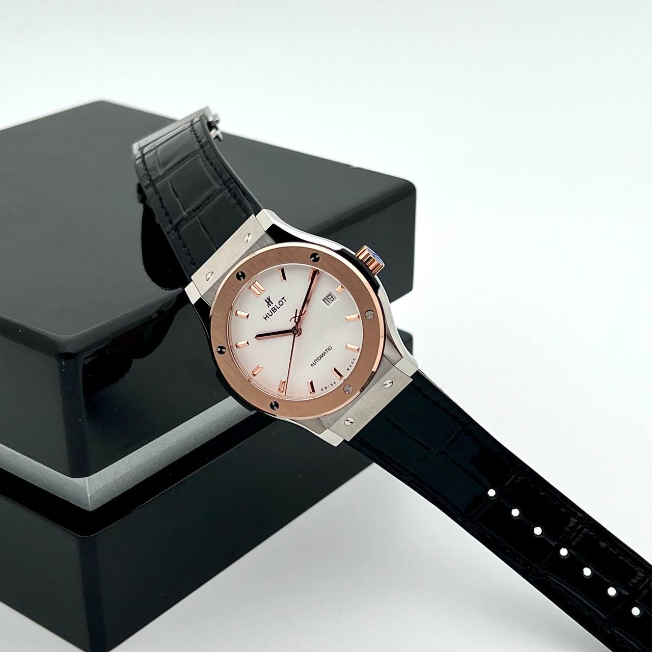 Часы Hublot LUX-84869 представляют собой элегантное сочетание классики и современности, демонстрируя изысканный вкус и стиль. Белый циферблат с контрастными деталями и коричневым кожаным ремешком идеально подходит для повседневной носки и особых случаев.