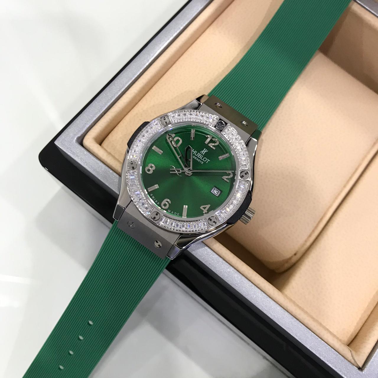 Часы женские Hublot LUX-25446 — это элегантный аксессуар, сочетающий в себе спортивный стиль и роскошь. Яркий зеленый циферблат в сочетании с серебристым корпусом и инкрустацией камнями придает часам особый шарм. Зеленый каучуковый ремешок обеспечивает комфортное ношение.