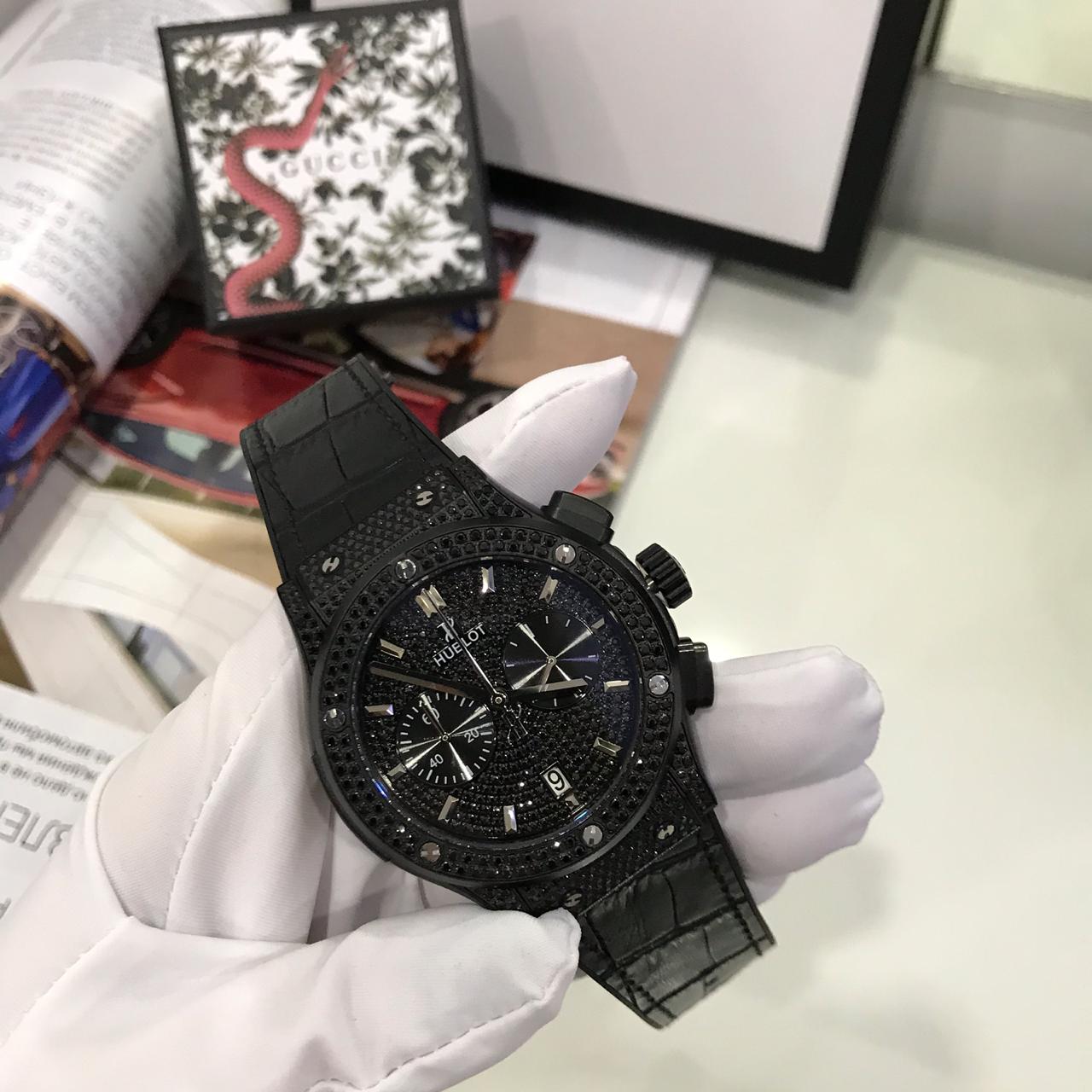 Элегантные женские часы Hublot LUX-26598 в черном исполнении — это воплощение роскоши и стиля. Корпус и циферблат, инкрустированные сверкающими кристаллами, в сочетании с ремешком из натуральной кожи создают изысканный образ. Эти часы станут эффектным дополнением к вечернему наряду или элегантному деловому стилю.