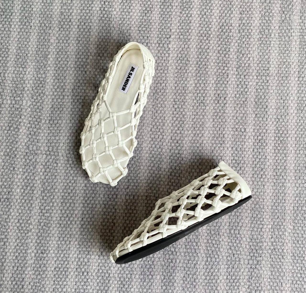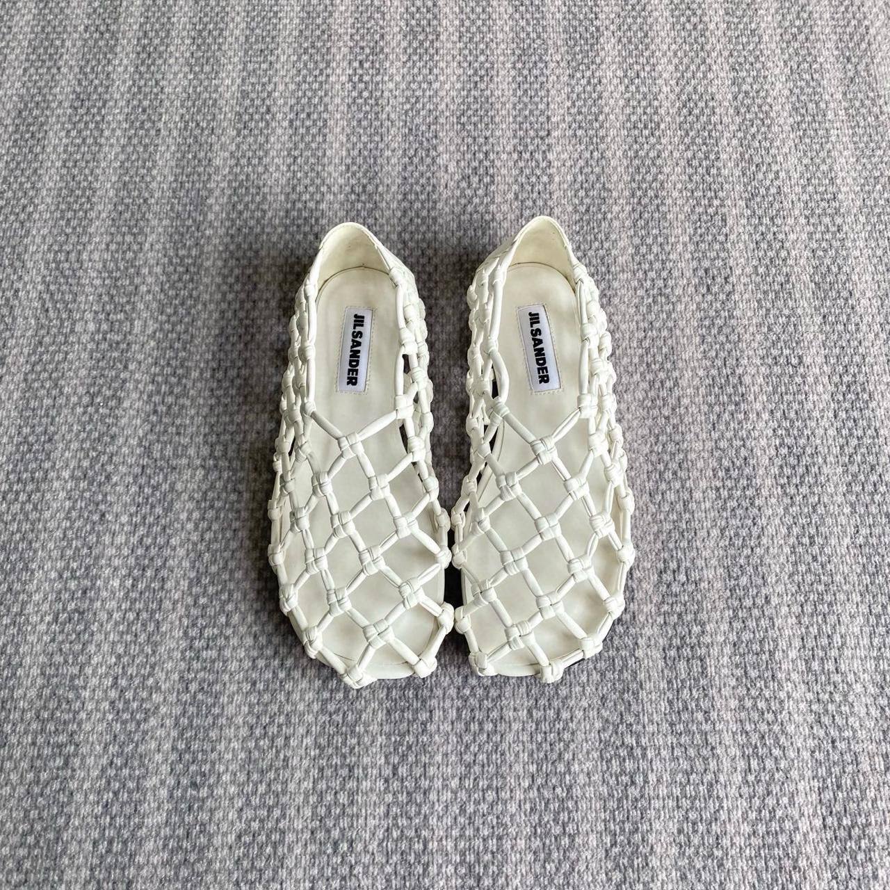 Балетки Jil Sander LUX-119490 – это элегантная обувь в современном стиле. Балетки выполнены в белом цвете и имеют уникальную текстуру плетения. Их можно использовать как для повседневных образов, так и для создания более формальных ансамблей.