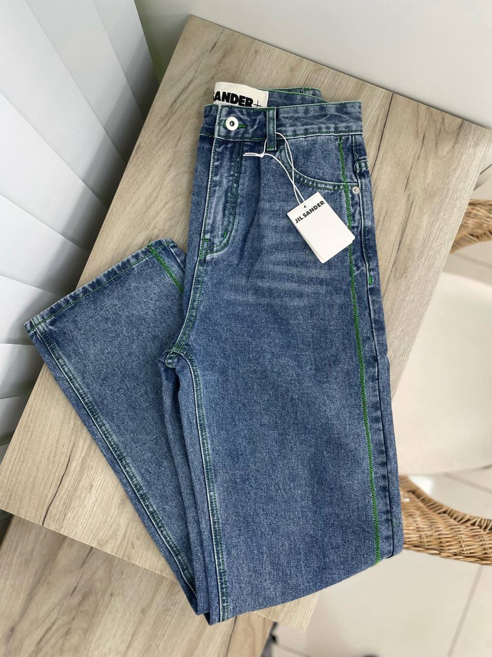Эти джинсы Jil Sander LUX-65840 представляют собой классическую модель с современным акцентом. Их синий деним, дополненный контрастной зеленой отстрочкой по боковым швам, придает образу динамичность и оригинальность. Модель идеально подходит для создания стильных повседневных образов, сочетая в себе комфорт и утонченный дизайн.