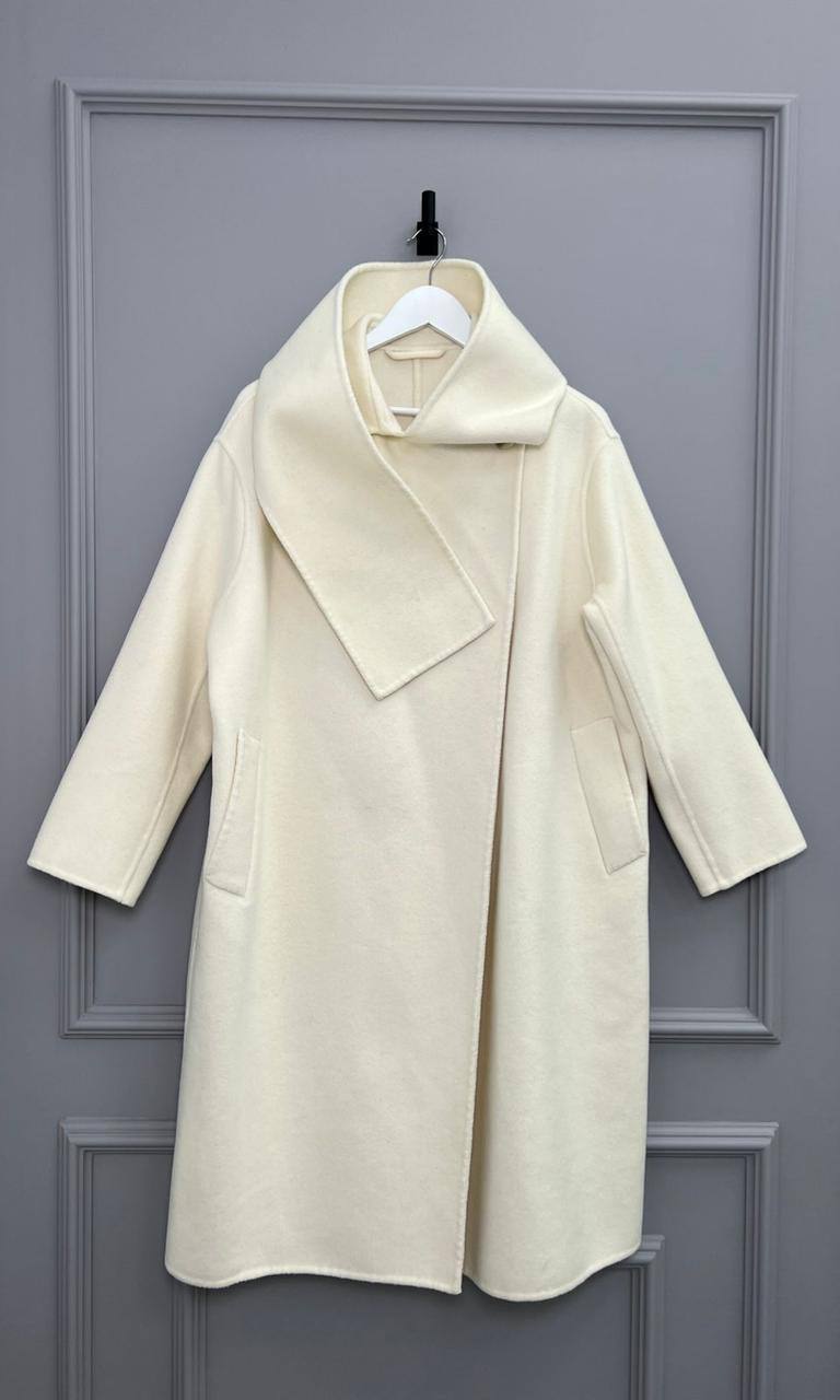 Пальто Jil Sander LUX-77079 — элегантное пальто кремового цвета, которое станет основой вашего зимнего гардероба. Пальто выполнено в минималистичном стиле с широким воротником и классическим силуэтом, что подчеркивает его универсальность и изысканность. Оно идеально подходит для создания стильных образов в холодное время года.