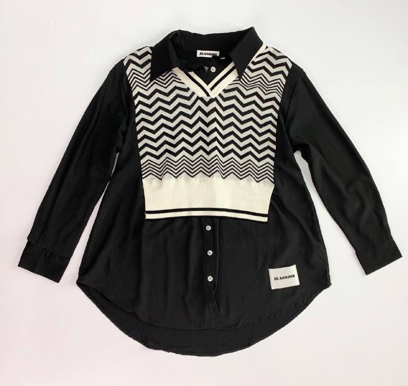 Эта рубашка Jil Sander LUX-55539 представляет собой уникальное сочетание классической рубашки и стильного вязаного элемента. Черный цвет и минималистичный дизайн делают ее универсальной, а контрастный узор "зигзаг" на груди добавляет оригинальности. Идеальный выбор для создания современных образов.