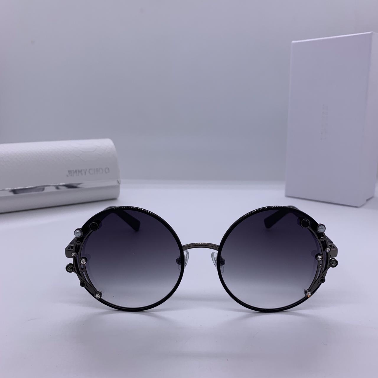 Эти очки Jimmy Choo LUX-8887 — стильный аксессуар для современной женщины. Круглая оправа с декоративными элементами в виде жемчуга и кристаллов придает им изысканный вид. Затемненные линзы с градиентом обеспечивают комфорт и защиту от солнца, делая их идеальным дополнением к повседневному или вечернему образу.