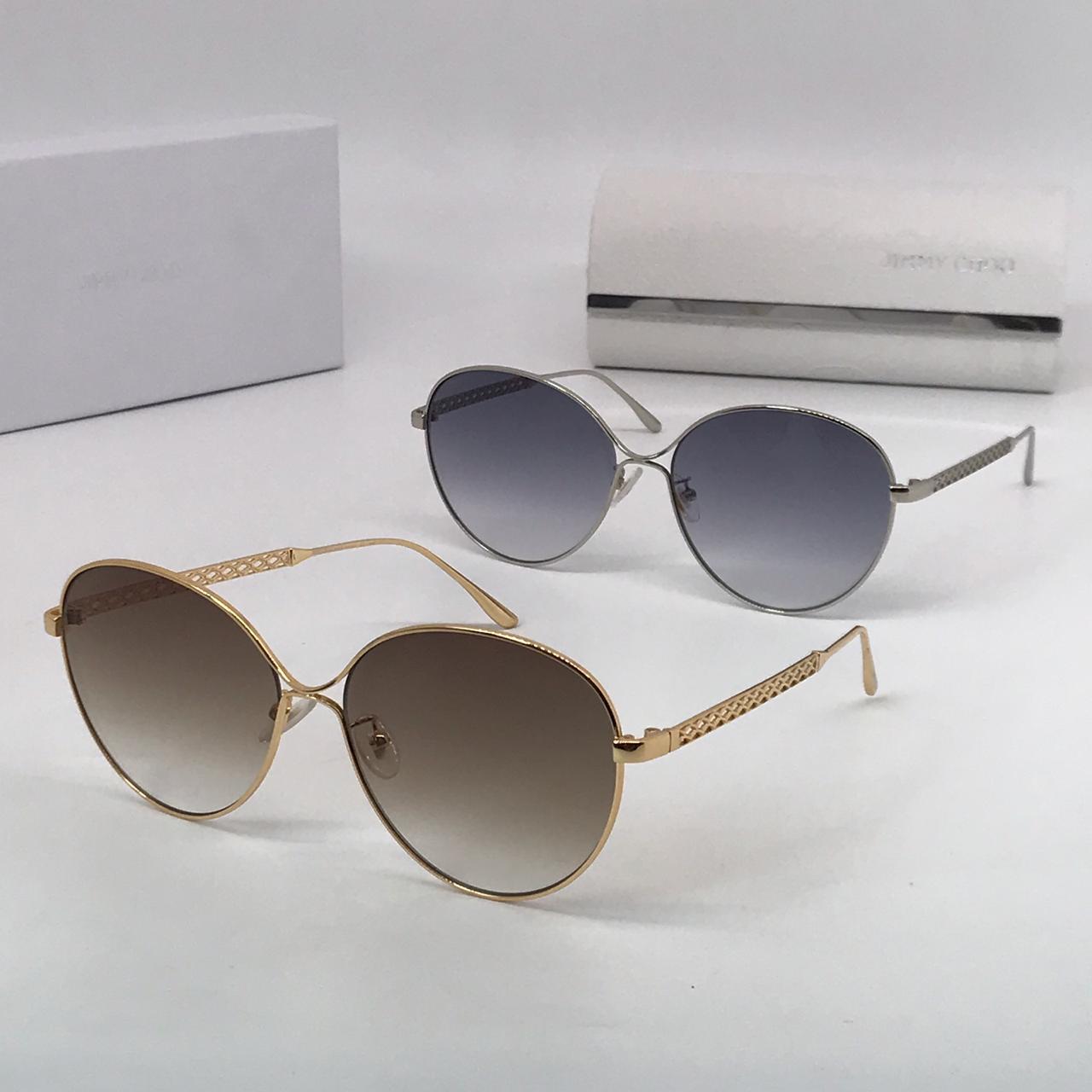 Изысканные женские солнцезащитные очки Jimmy Choo LUX-15557 выполнены в элегантном стиле, подчеркивающем утонченность образа. Их золотистая оправа с оригинальным геометрическим узором на дужках и объемные линзы с градиентным затемнением придают им особый шик. Эти очки станут идеальным аксессуаром для современных модниц, ценящих роскошь и безупречное качество.
