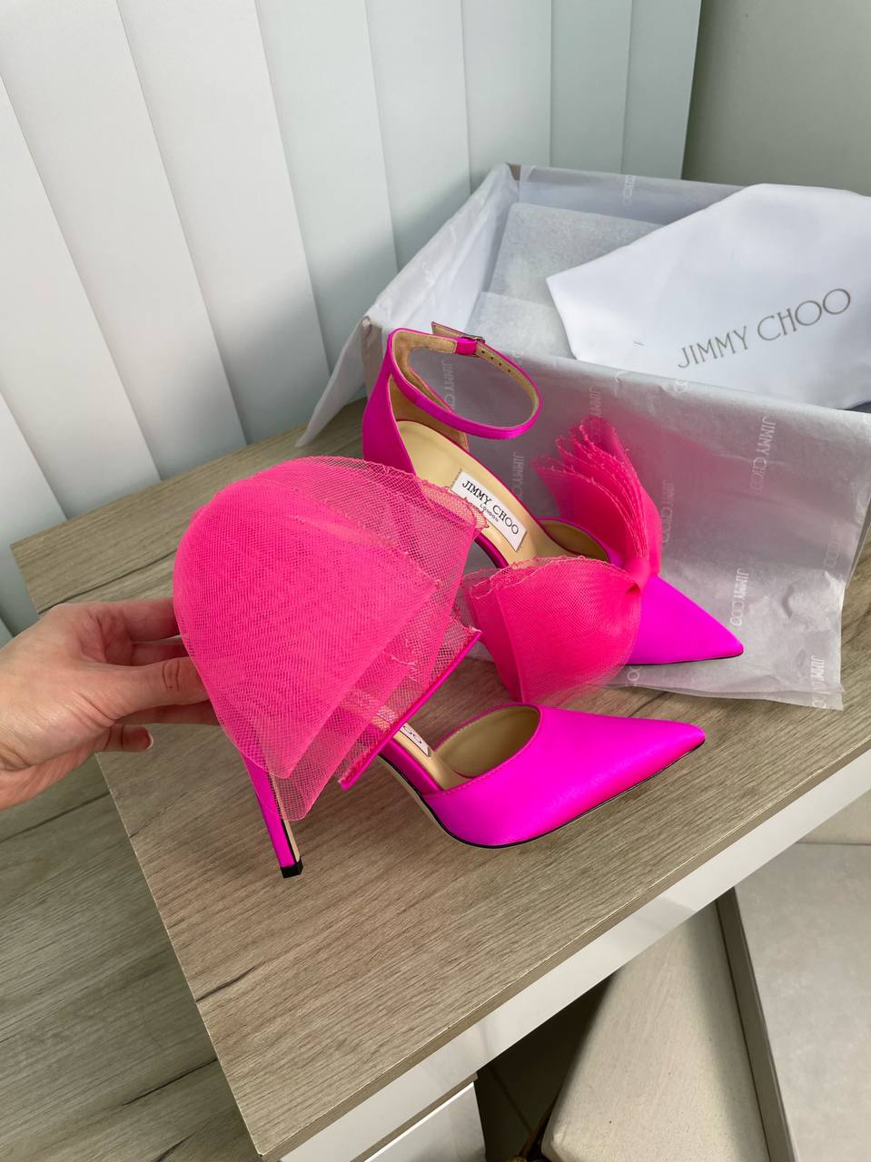 Эти элегантные туфли Jimmy Choo LUX-65736 — идеальный выбор для создания эффектного образа. Яркий розовый цвет и акцент в виде объемного банта из тюля придают им неповторимый стиль. Изящный дизайн с острым носом и ремешком вокруг лодыжки подчеркивает женственность. Эти туфли станут ярким акцентом любого вечернего или праздничного наряда.