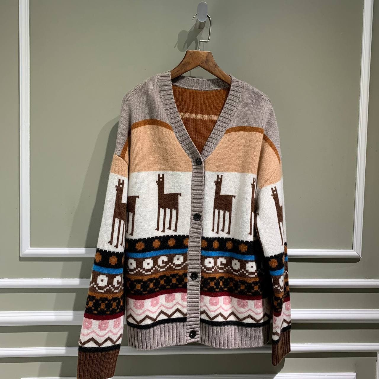 Этот кардиган LUX-58167 бренда LUXE-CRIME представляет собой стильный и уютный элемент гардероба, выполненный в стиле casual. Оригинальный принт с изображениями лам и геометрическими узорами в сочетании с пастельной цветовой гаммой придает изделию индивидуальность. Кардиган застегивается на пуговицы и идеально подходит для создания многослойных образов в прохладную погоду, добавляя нотку игривости и комфорта.