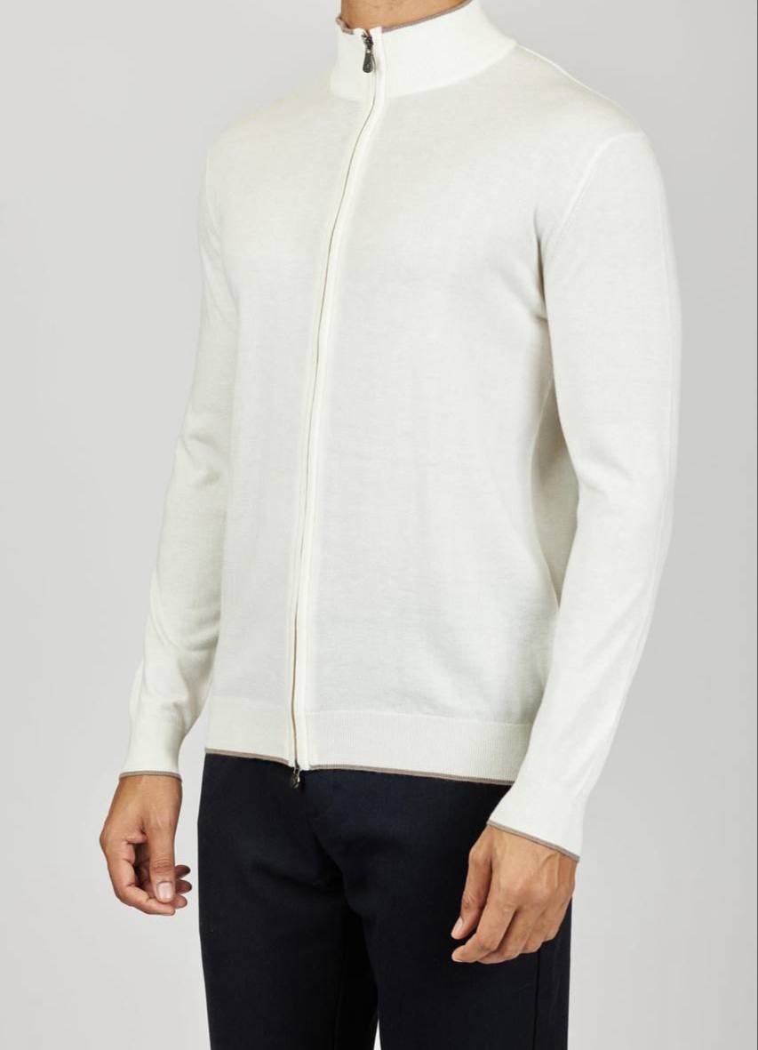 Кардиган Eleven LUX-110044 представляет собой стильный предмет гардероба, выполненный в классическом стиле. Кардиган белого цвета, имеет высокий воротник стойку и застежку-молнию. Идеально подходит для создания элегантных и комфортных образов в повседневной жизни.