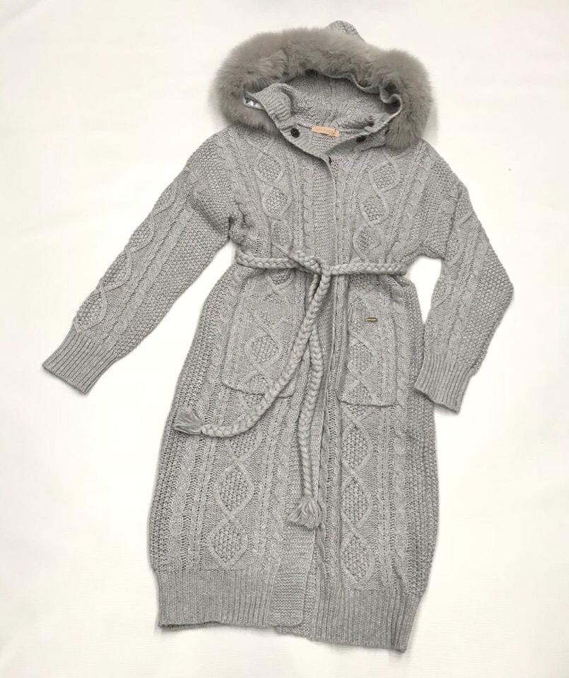 Кардиган ОДЖ-059 от ОДЖ - это стильное и универсальное дополнение к вашему гардеробу. Модель выполнена в классическом стиле с акцентом на уют и комфорт, украшена объемными косами и дополнена капюшоном с меховой оторочкой.