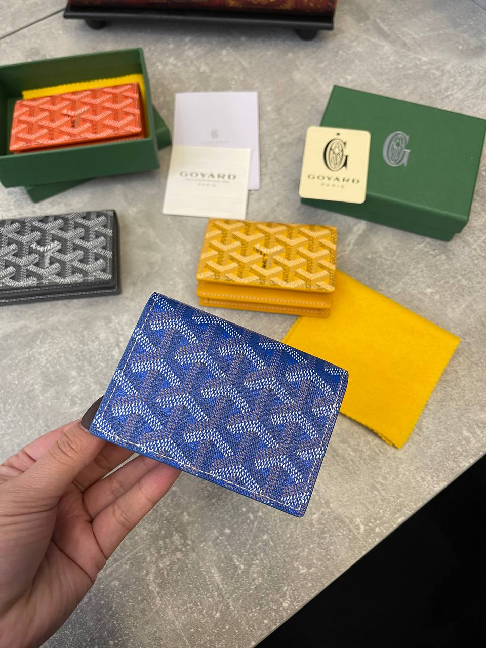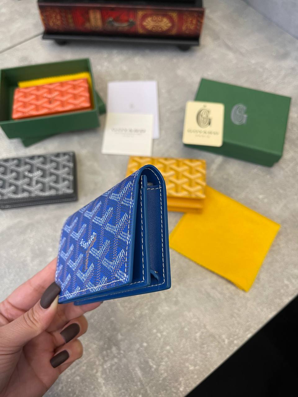 Картхолдер Goyard (LUX-97246) — элегантный аксессуар от известного французского бренда. Он выполнен в классическом стиле с узнаваемым фирменным узором. Яркий синий цвет с белым узором придает изделию роскошный и современный вид. Предназначен для хранения банковских карт, визиток и других небольших предметов.