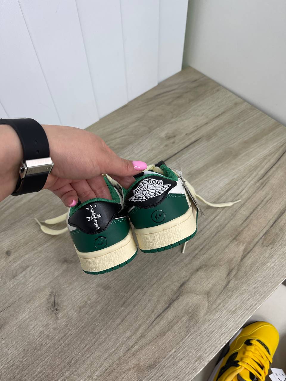 Кеды NIKE AIR Jordan 1 Low White Black (LUX-85068) - это стильная модель в спортивном стиле. Основной цвет - белый, с черными и зелеными акцентами. Данная пара отлично подойдёт для повседневной носки, подчёркивая индивидуальность и вкус своего обладателя.