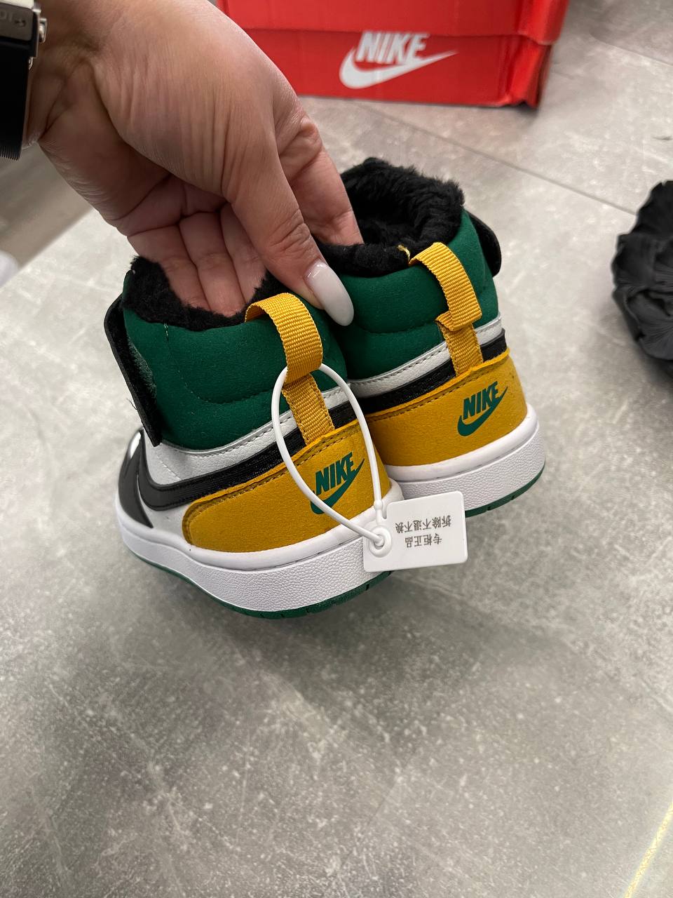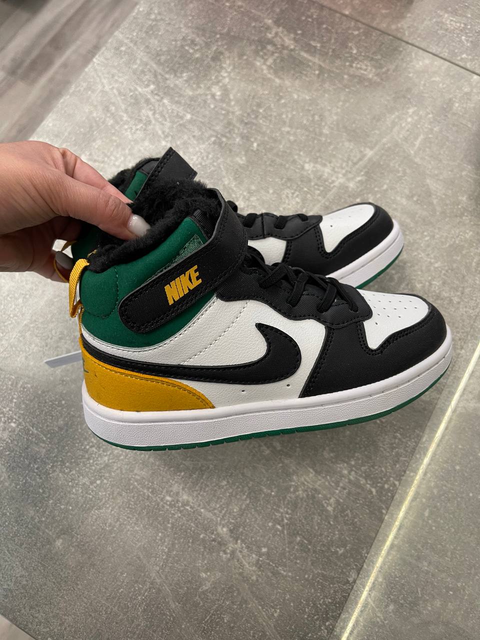 Кеды Nike (LUX-100875) – это стильные кеды для детей, сочетающие в себе современный дизайн и практичность. Эти кеды выполнены в яркой цветовой гамме: белый, черный, зеленый и желтый цвета, что делает их привлекательными для повседневной носки.