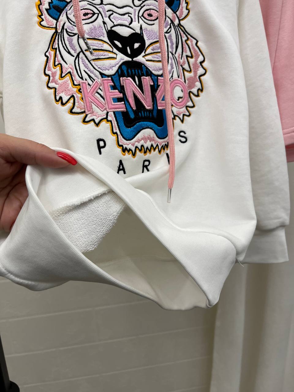 Костюм Kenzo LUX-103037 представляет собой стильный комплект, состоящий из худи и шорт. Худи выполнено в белом цвете с ярким вышитым изображением тигра, шорты — в розовом. Костюм предназначен для повседневной носки, идеально подойдет для прогулок и активного отдыха.
