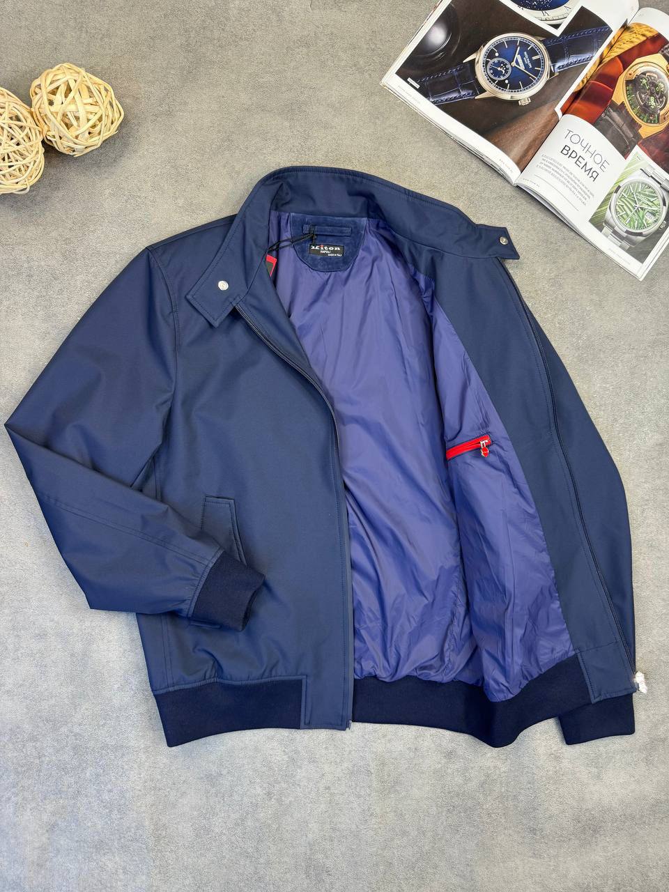 Бомбер Kiton LUX-107737 - это стильная куртка в классическом спортивном стиле. Модель выполнена в темно-синем цвете с гладкой текстурой. Бомбер подойдет для создания образов в стиле casual.