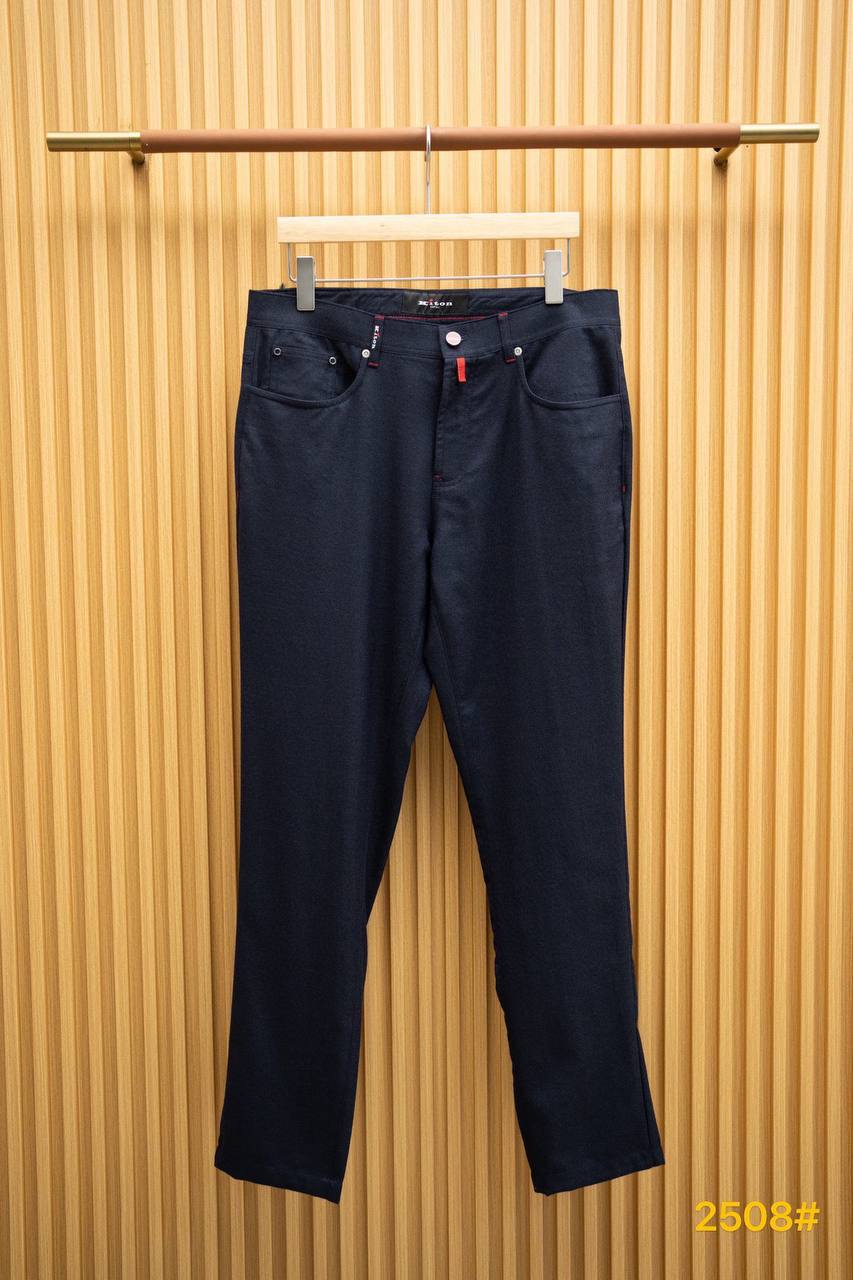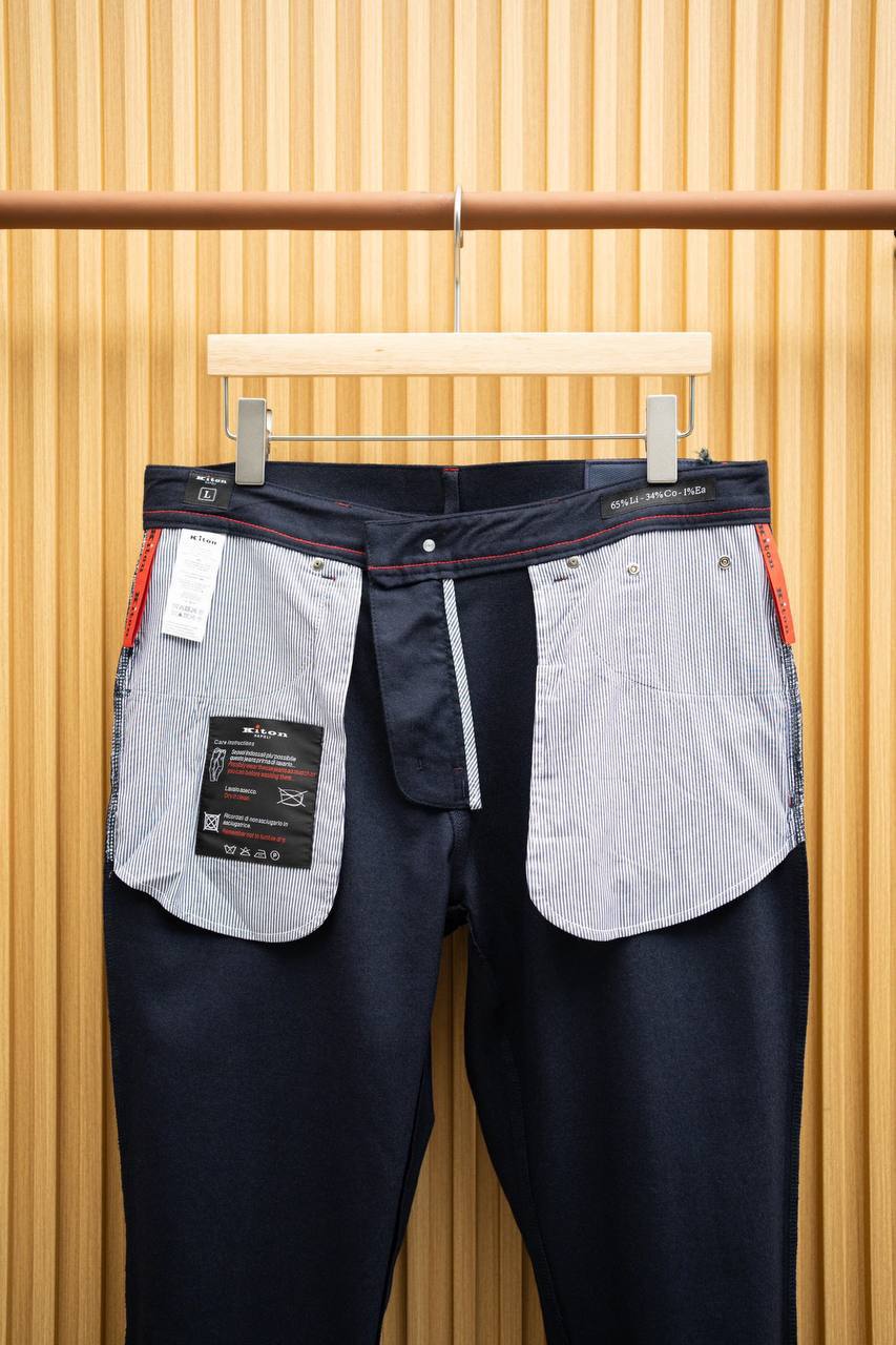 Брюки Kiton LUX-111540 – это элегантный образец классического стиля. Брюки темно-синего цвета, обладают гладкой текстурой. Идеально подойдут для создания как деловых, так и повседневных образов.