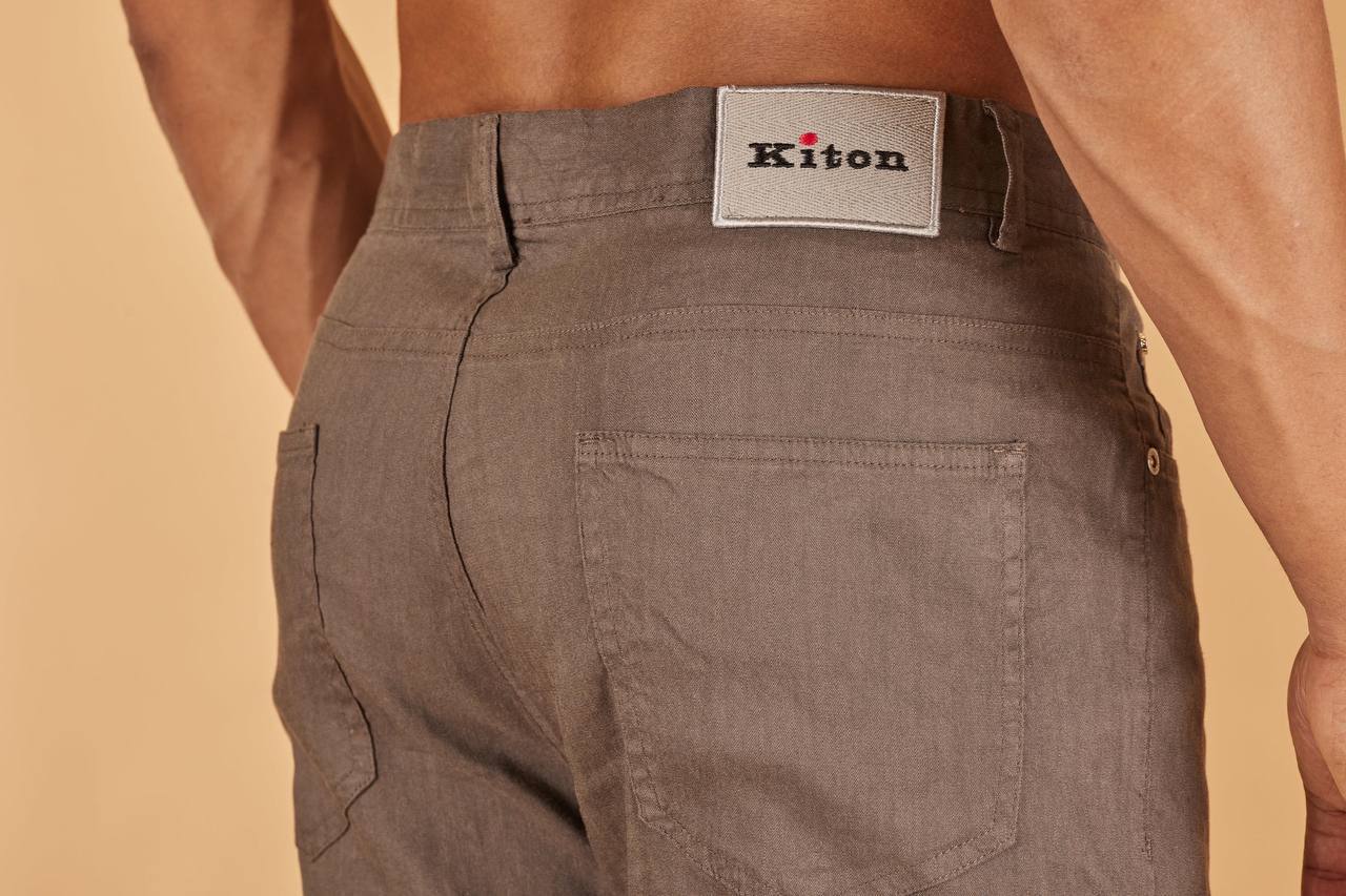 Брюки Kiton LUX-116223 — это стильные брюки, выполненные в классическом стиле. Брюки имеют однотонный коричневый цвет, текстуру, которая выглядит как джинсовая ткань, и прямой крой. Эта модель подходит для создания повседневных и деловых образов.