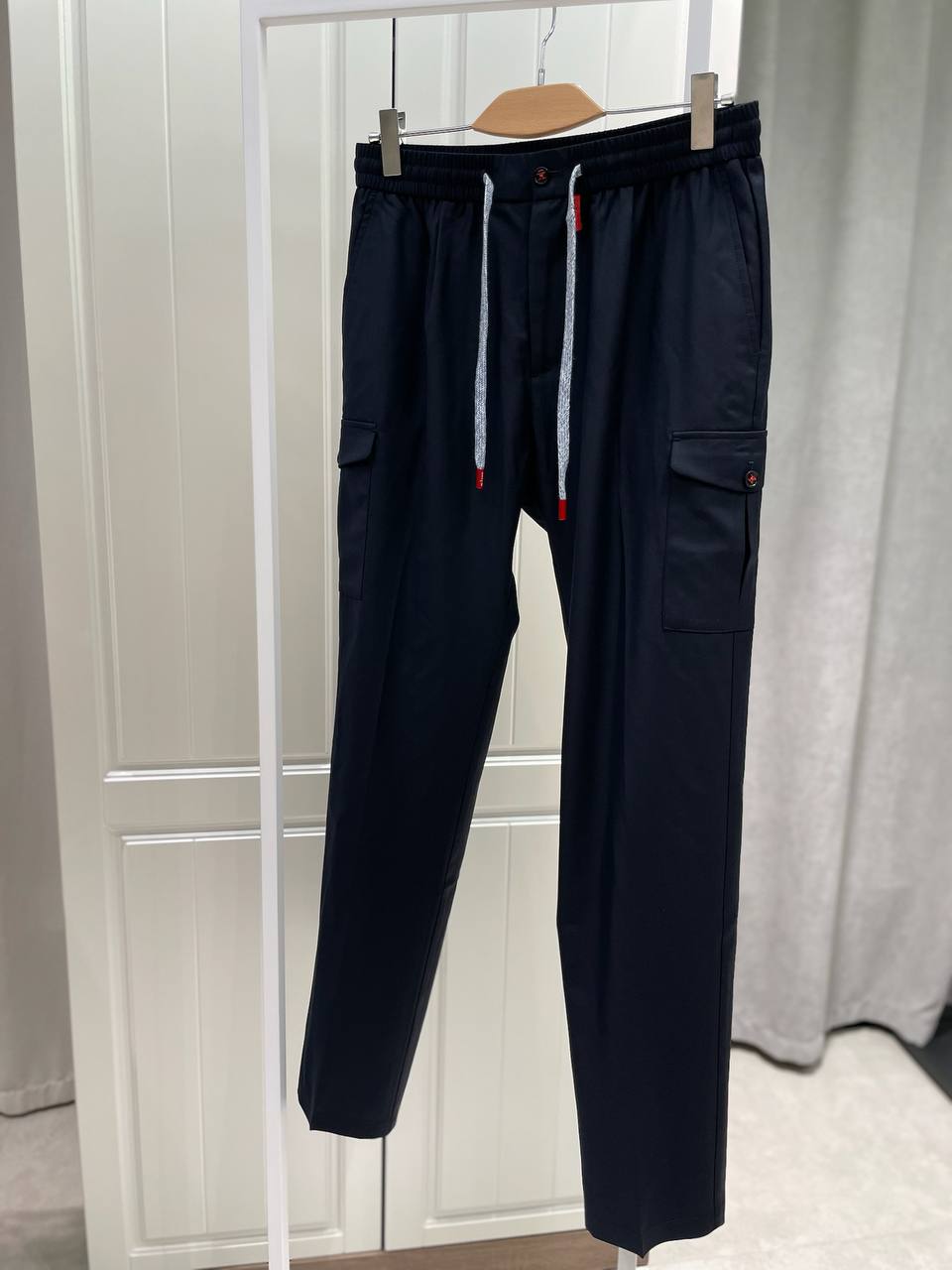 Брюки Kiton LUX-118757 - это элегантные брюки в стиле кэжуал, выполненные в темно-синем цвете. Брюки имеют прямой крой, классические карманы и удобную посадку на талии. Эта модель подойдет для создания как повседневных, так и более формальных образов.